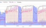 当然インターバルがかかる所なんですけど、先頭で展開できていたと思われる所は、5-6秒、最後尾の所は10秒近く負荷がかかったあと、減速していた。