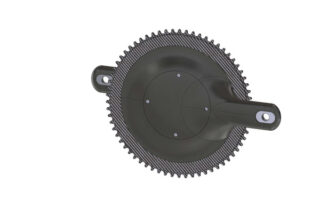 トラック用には、58/59/60/61/62/63/64/65/66Tの低摩擦添加剤入り1/8 “トラック・チェーンリングが付属する。 ステップチェーンリングデザインと呼ばれる独自のエアロチェーンリングは、歯とチェーンリングの段差が、チェーン外板からの空気力学的な流れの分離を減らす効果がある。