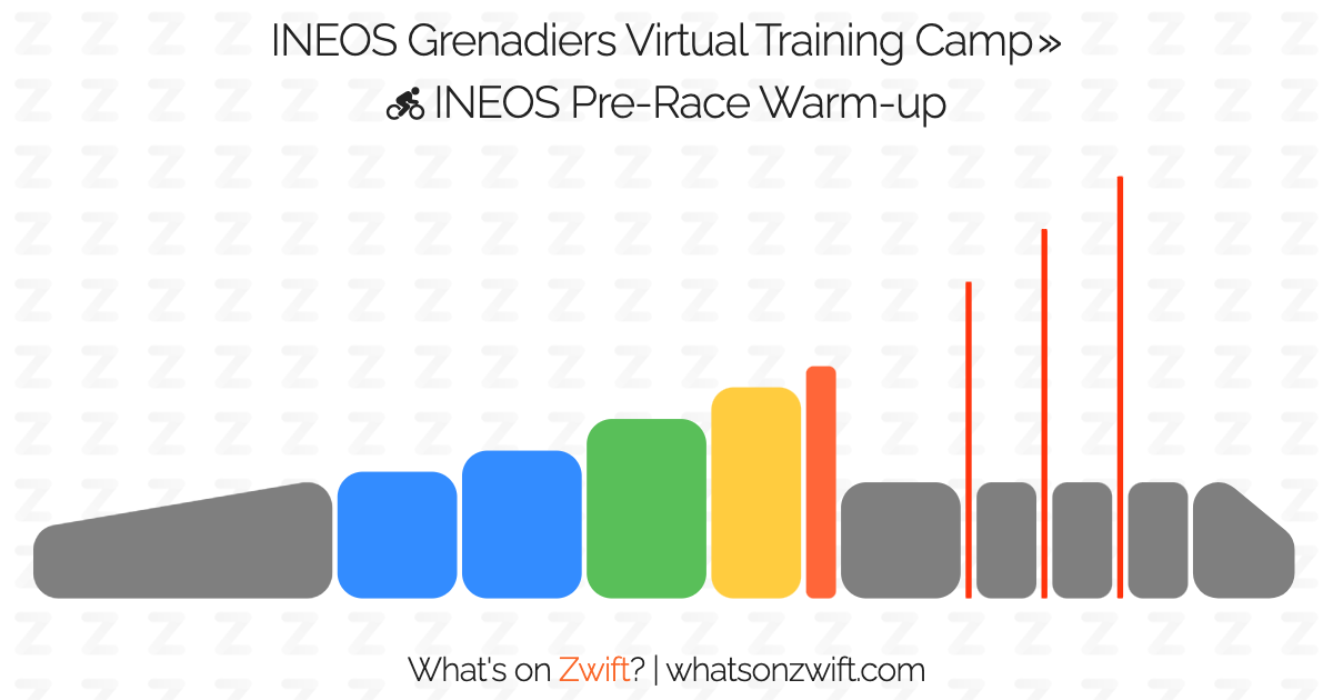 ウォーミングアップはイネオスのピッドコックがやっているという「INEOS Pre-Race Warm-up」ウォーミングアップをやる。これ、ZWIFTに同じINEOS Pre-Race Warm-upのメニューがある。