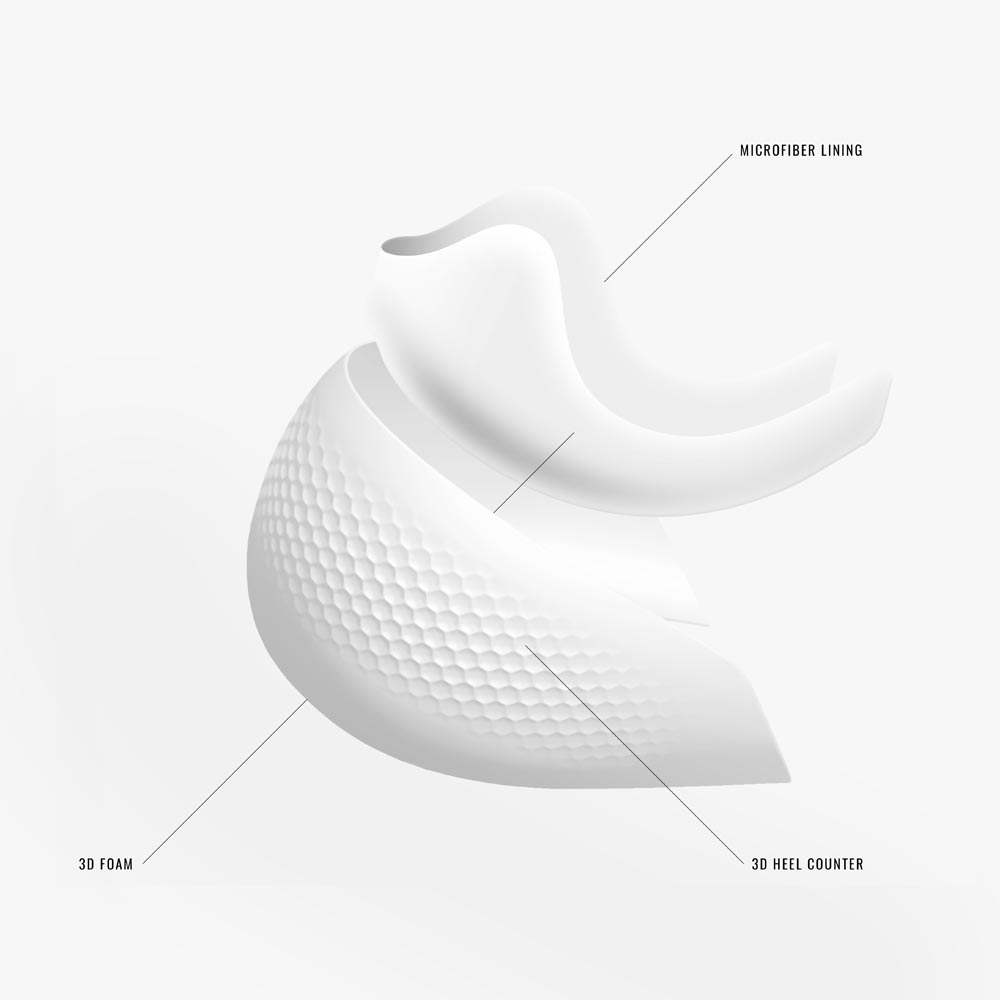 かかとを最大限ホールドし、足の滑りを最小限に抑える仕組みが3Dヒールカウンターだ。自然なホールド感に優れており、脚の土台・基礎となる足がぶれないため、ペダリングの際の脚の軌道を最適化してくれる。