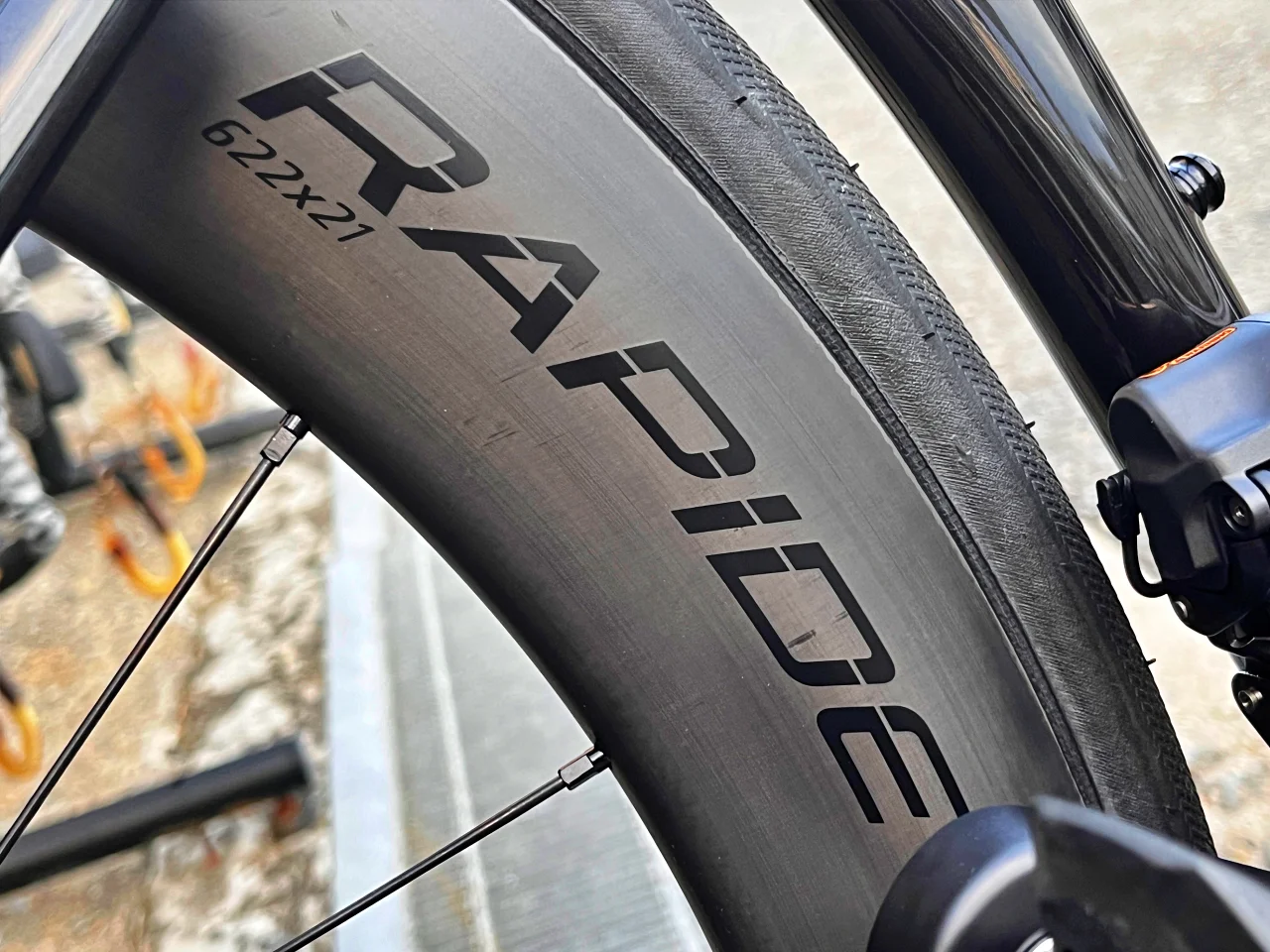 形状はおろか、ハンドルもRapideコクピット、リムもRapide CLXと同じであり、ジオメトリも寸分狂わず同一だ。ライダーのポジションの影響も皆無なので空力性能に違いはでない。