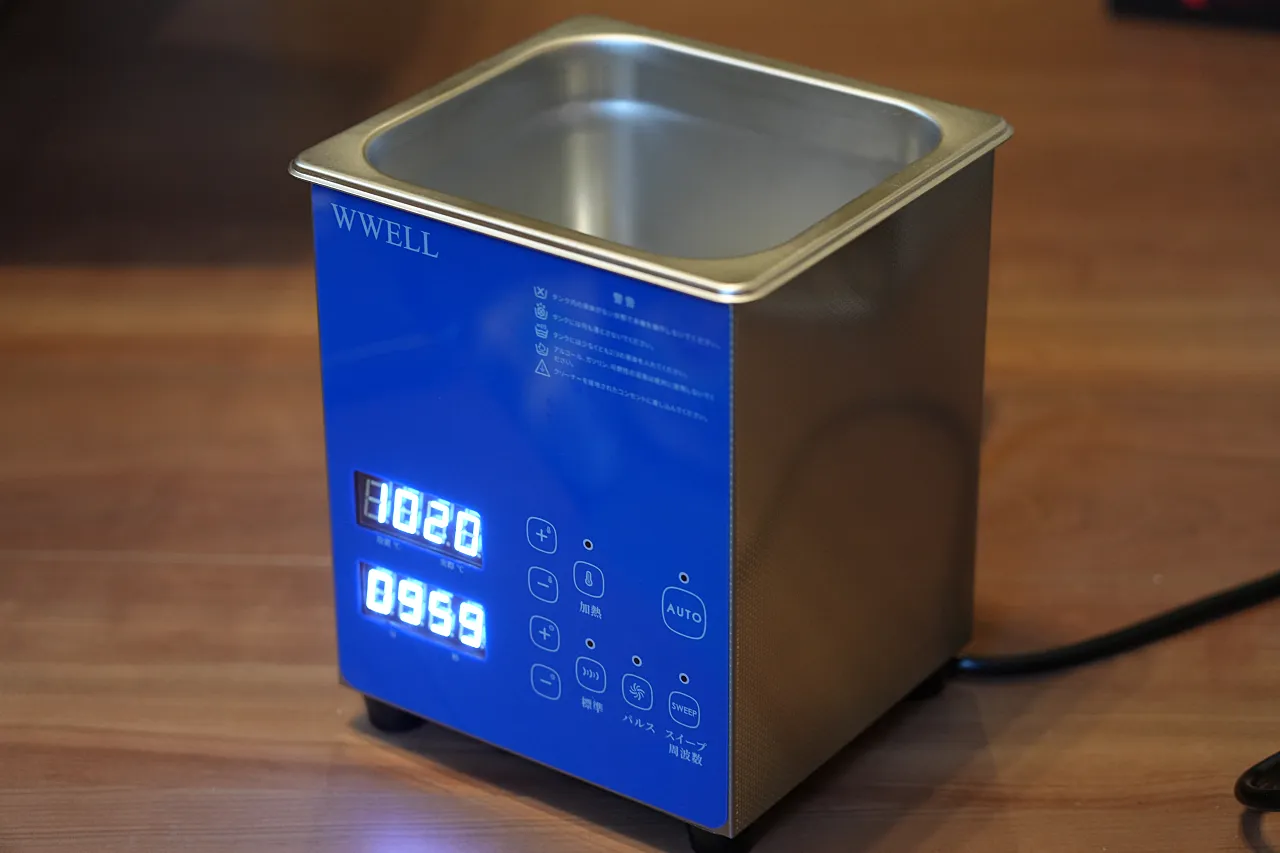これまで40~42kHzタイプの家庭用超音波洗浄機を使っていた。洗浄力は十分だと思っていたが、28kHzタイプかつ、業務用の最大99分まで連続動作ができる機能は重宝するだろう。