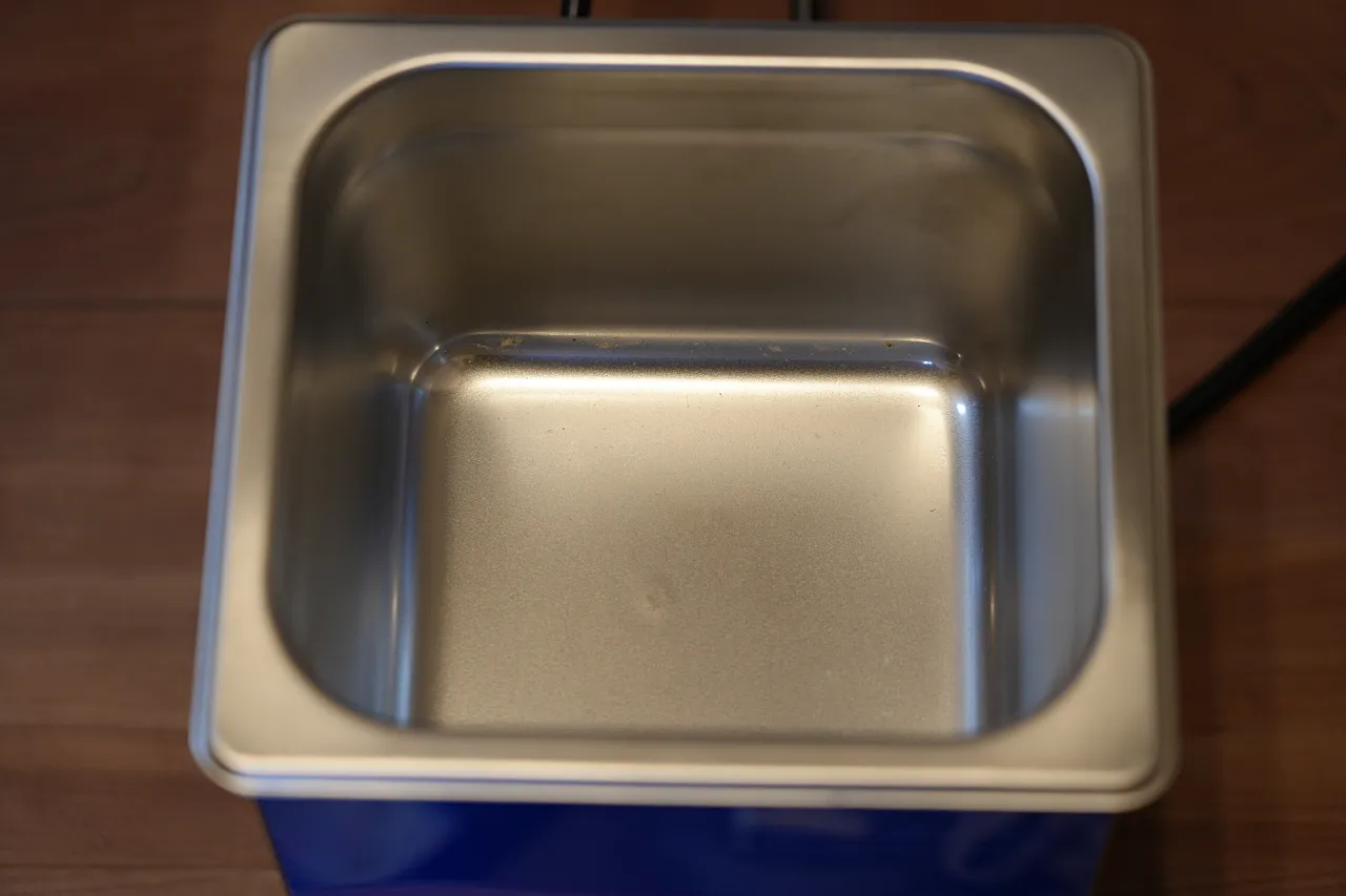 ボディはステンレス鋼で作られており、クリーニング槽はSUS304ステンレス鋼材料を使用している。溶接なしの一度押し出し成形で1mmの厚さだ。腐食に強く、さびに強い。