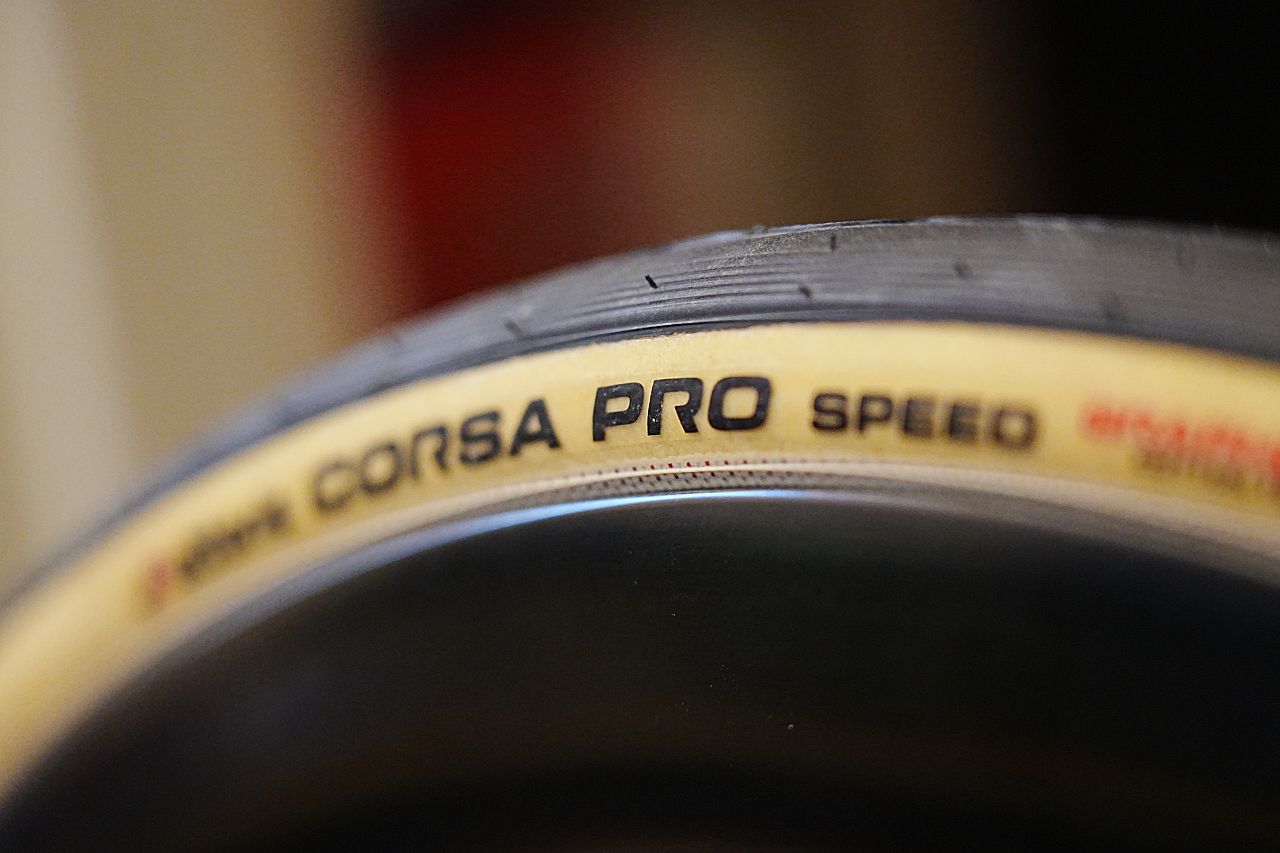 過去に、グラフェンを初採用した頃のCORSA SPEEDを使ったことがあるのだが、家を出て5kmでパンクした。このタイヤの評価が「最速か、パンクか」だった。レースで使いたいとは思えないタイヤだった。