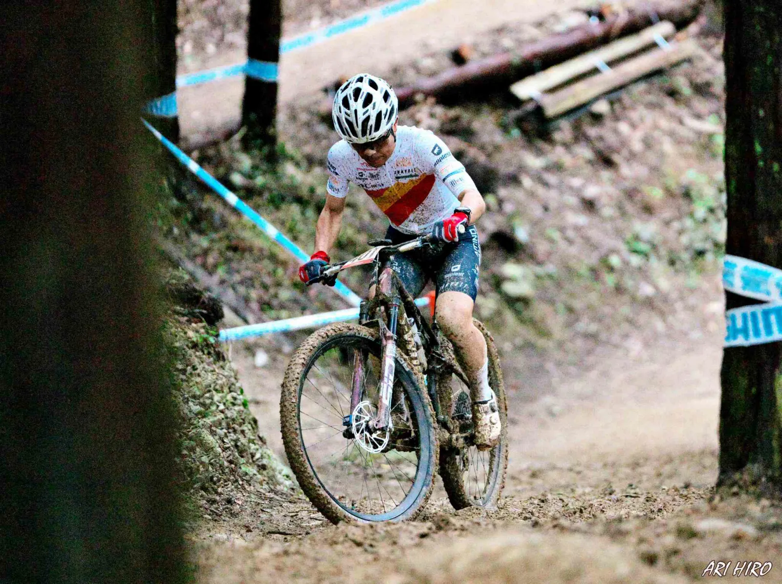 ドロが張り付いた木の根は滑りやすく、さらに下り区間は岩が出てかなり滑りやすく難易度が3割増していた。コースは昨年走っていたため、前日試走はパスした。ただ、当日の40分は時間が短く2周しかできず、セクションやラインの確認も十分に行うことが出来なかった。
