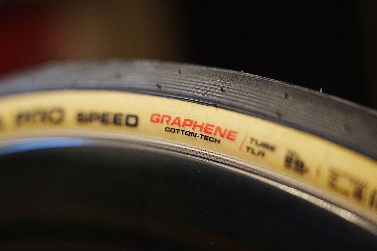 Corsa PROシリーズのトレッドコンパウンドには、Vittoria独自のGraphene + Silicaコンパウンドが採用されている。これは、ナノテクノロジー素材であるグラフェンと、タイヤ性能向上に実績のあるシリカを組み合わせたものだ。