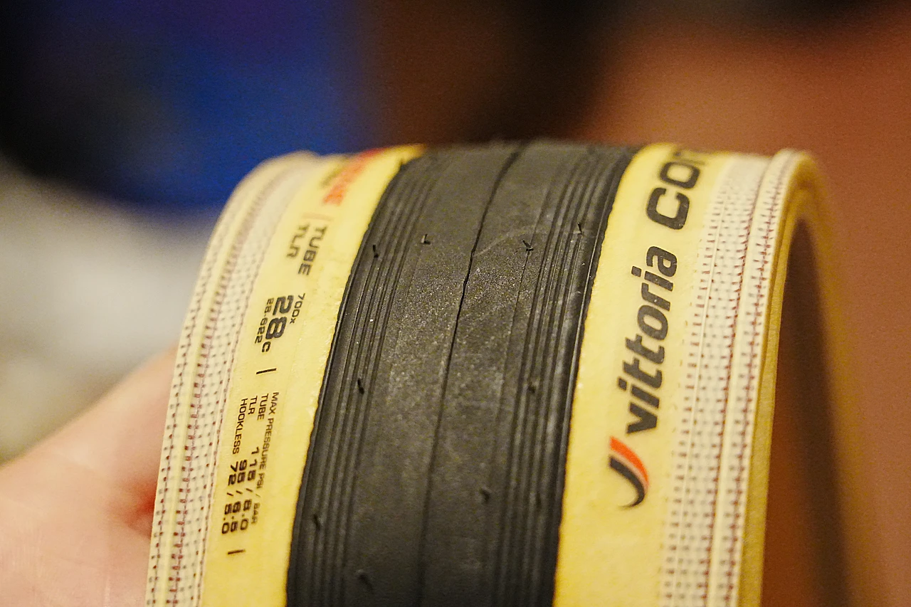 Corsa PRO ControlはCorsa PROと同じコンパウンドで作られているが、さらなる保護が施されている。そのため、ストラーデ・ビアンケのようなグラベル区間のあるレースで採用されるのだろう。そして、タイヤインサートと共にセットアップされている。