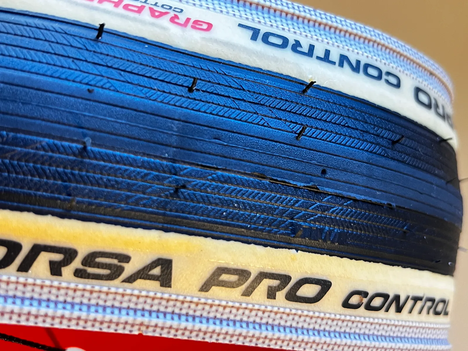 - Corsa PROシリーズの中で最も転がり抵抗が大きい。これは、強化された耐パンク構造と厚いトレッドによる必然的なトレードオフの関係にある。