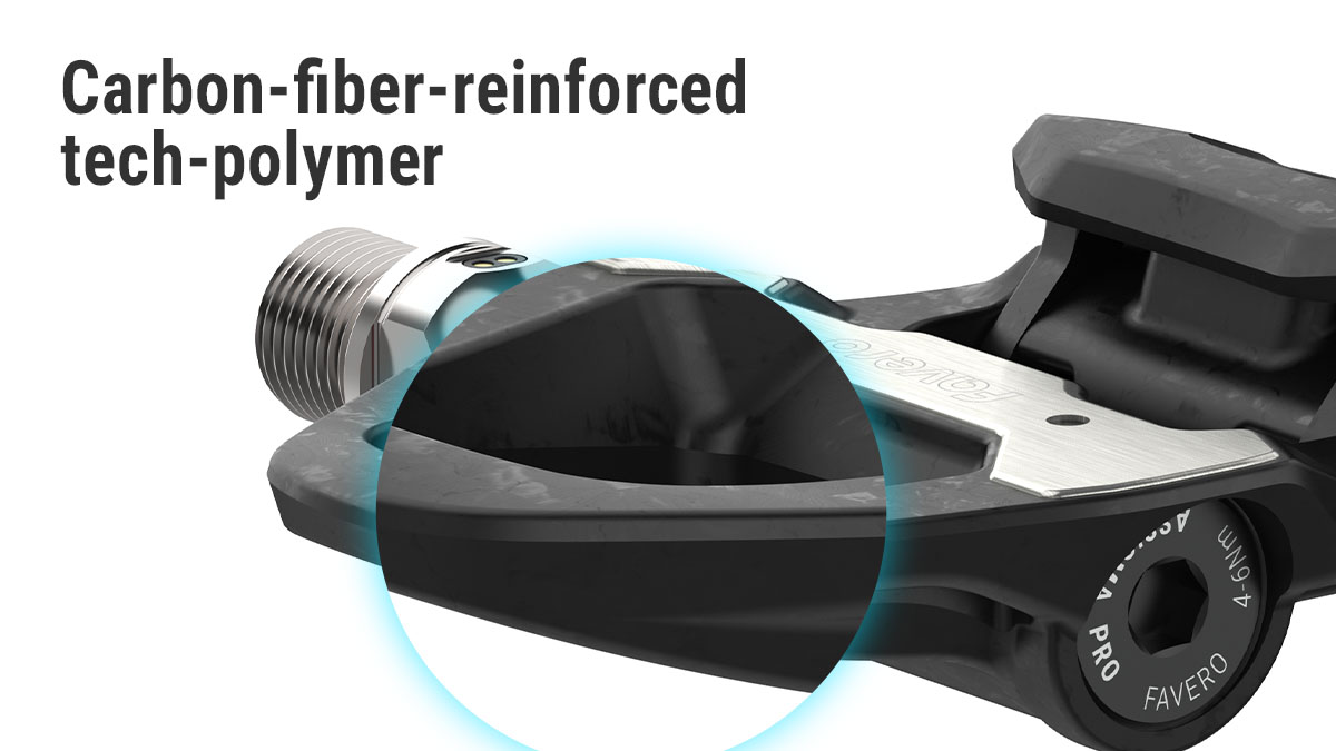 ペダルボディの素材には、軽量性と高剛性を両立するカーボンファイバー強化テクノポリマーが採用されている。