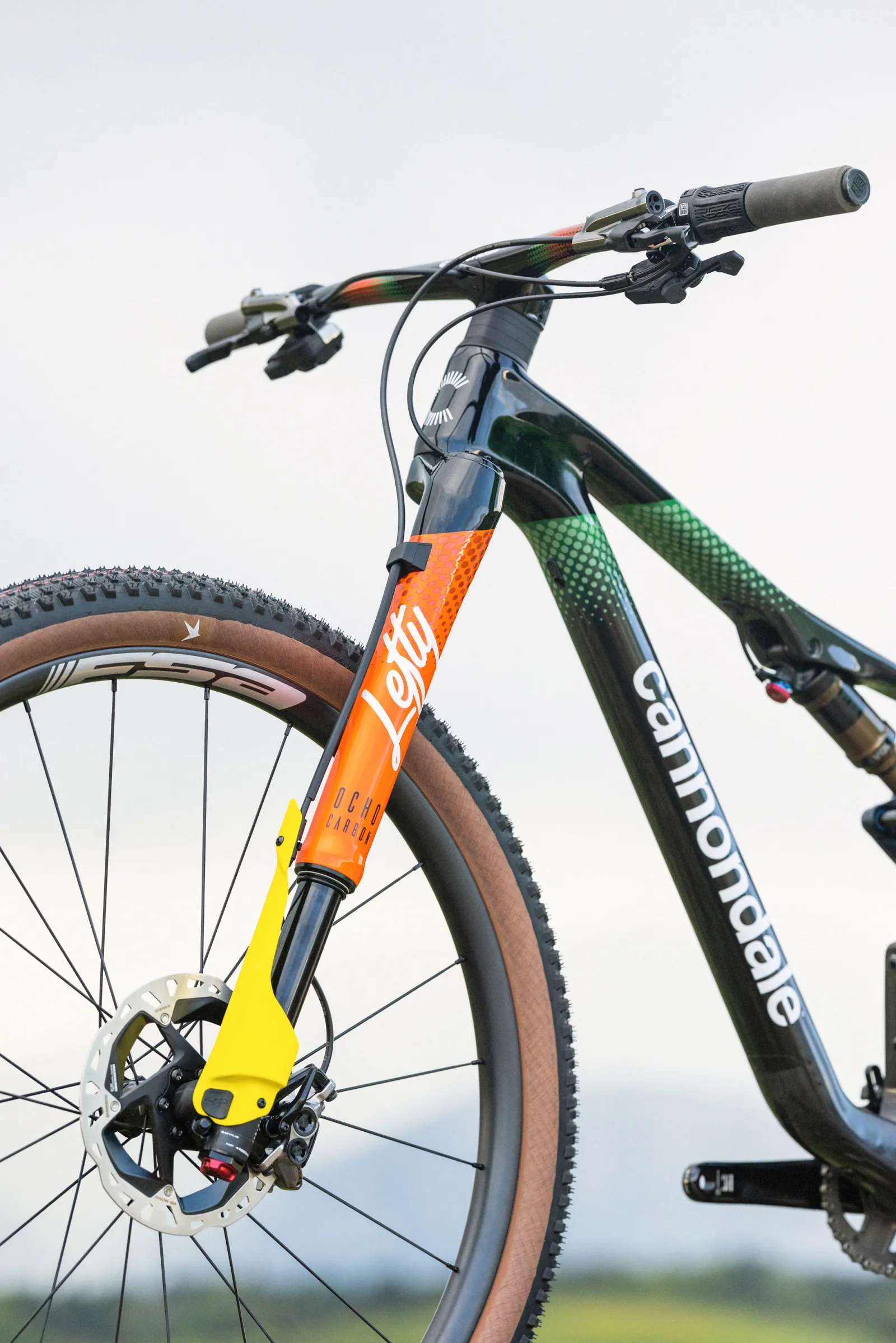 - フロントフォークには高剛性とスムーズな動作に定評のあるLefty Ocho 120 Carbonを採用。