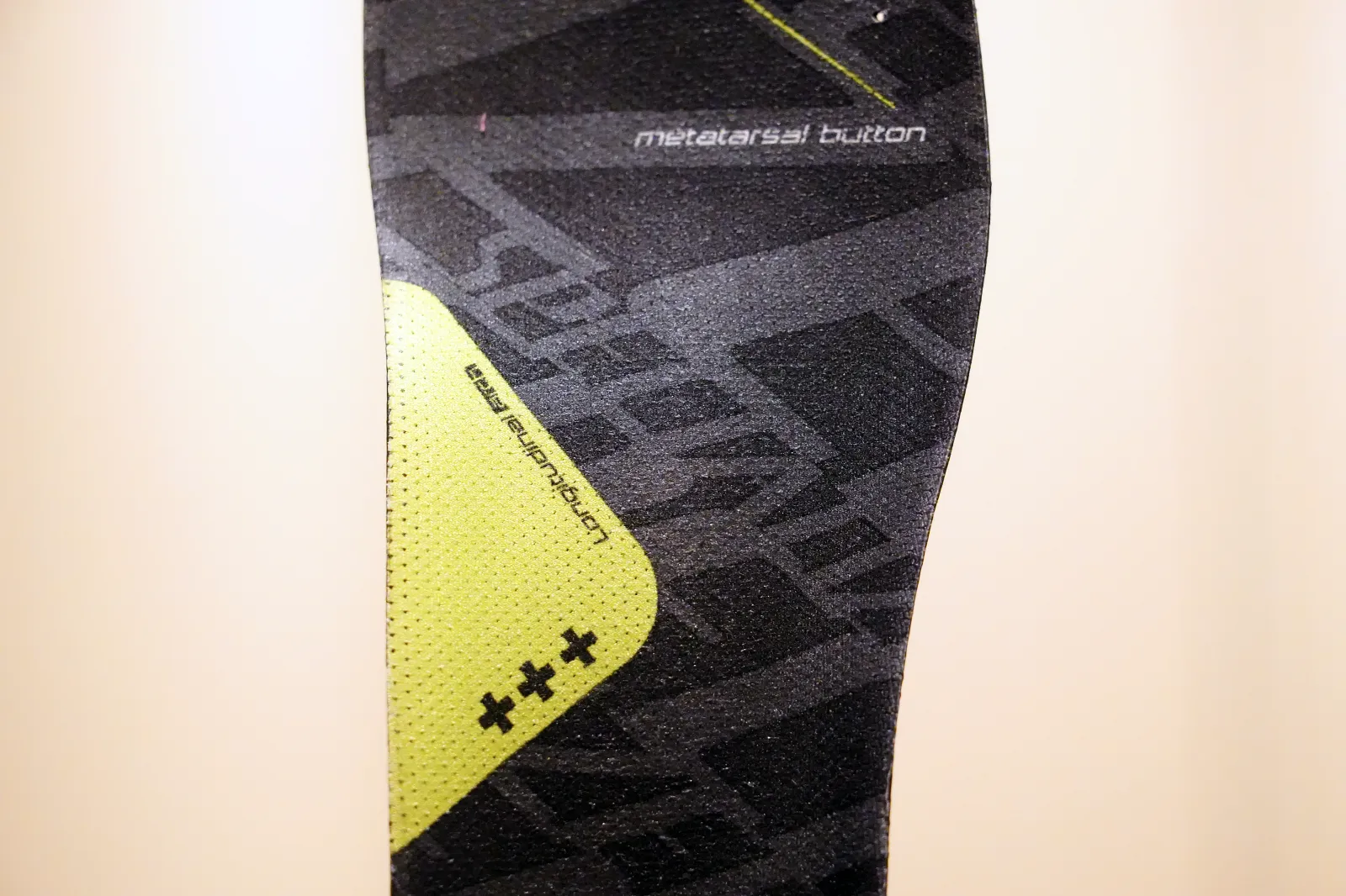 SLフットベッドでは、この縦足弓サポートのレベルを3段階(Red+:低めのアーチ用、Blue++:中程度の高さのアーチ用、Green+++:高めのアーチ用)で提供しており、個々のライダーの足のアーチタイプ(扁平足、標準的なアーチ、ハイアーチ)に合わせた選択を可能にしている。