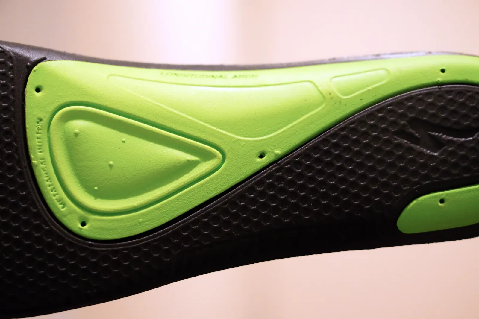 スペシャライズドのBGシューズとフットベッドの性能を支える核心技術は、縦足弓サポート、中足骨ボタン、そしてシューズのアウトソールに組み込まれるバラスウェッジという、三つの要素が協調して機能するシステムだ。