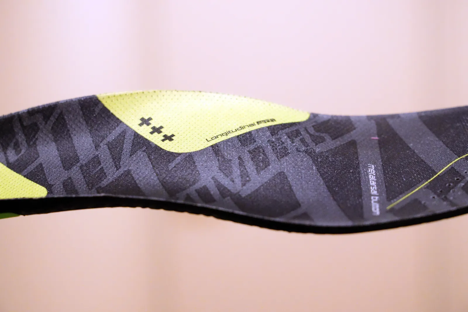 - 3段階のアーチサポート選択肢: Red+(低)、Blue++(中)、Green+++(高)という3種類のアーチサポートレベルが用意されており、個々のライダーのアーチタイプにある程度合わせた選択が可能。