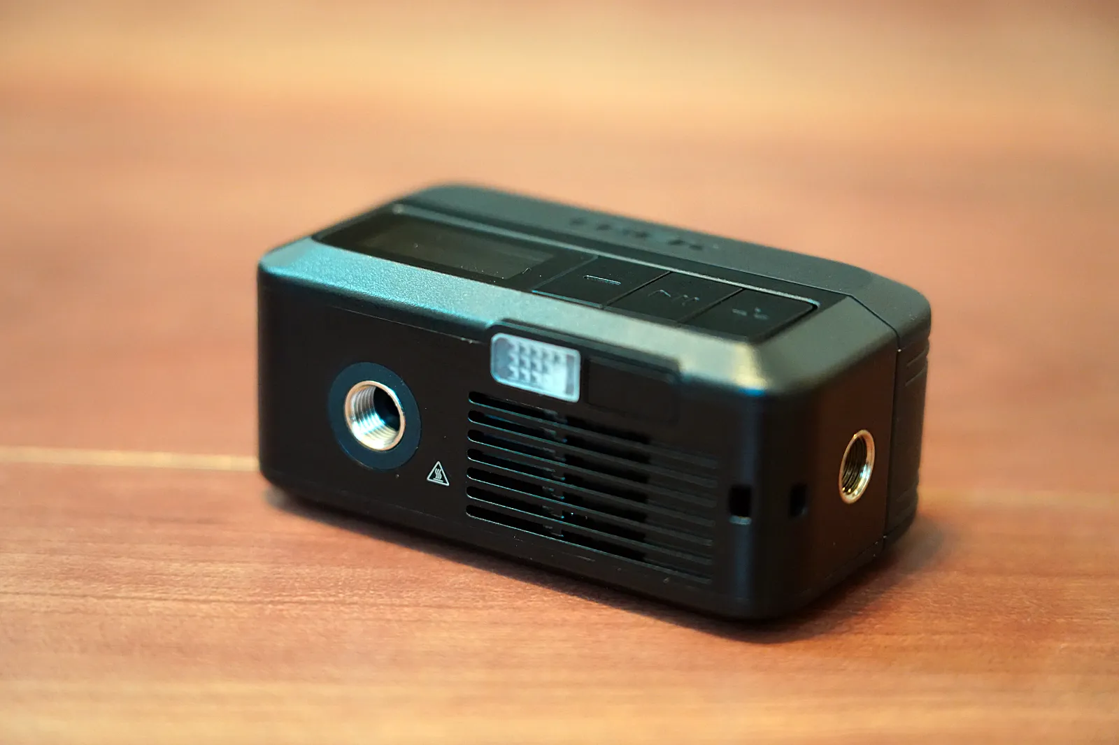 本体側面には通気孔が設けられており、これらを塞がないようにポンプを持つ位置に注意を払う必要がある。プラスチック製のきょう体は、金属製のものと比較して手への熱伝導をある程度抑制している可能性はあるが、根本的な解決には至っていないと思う。