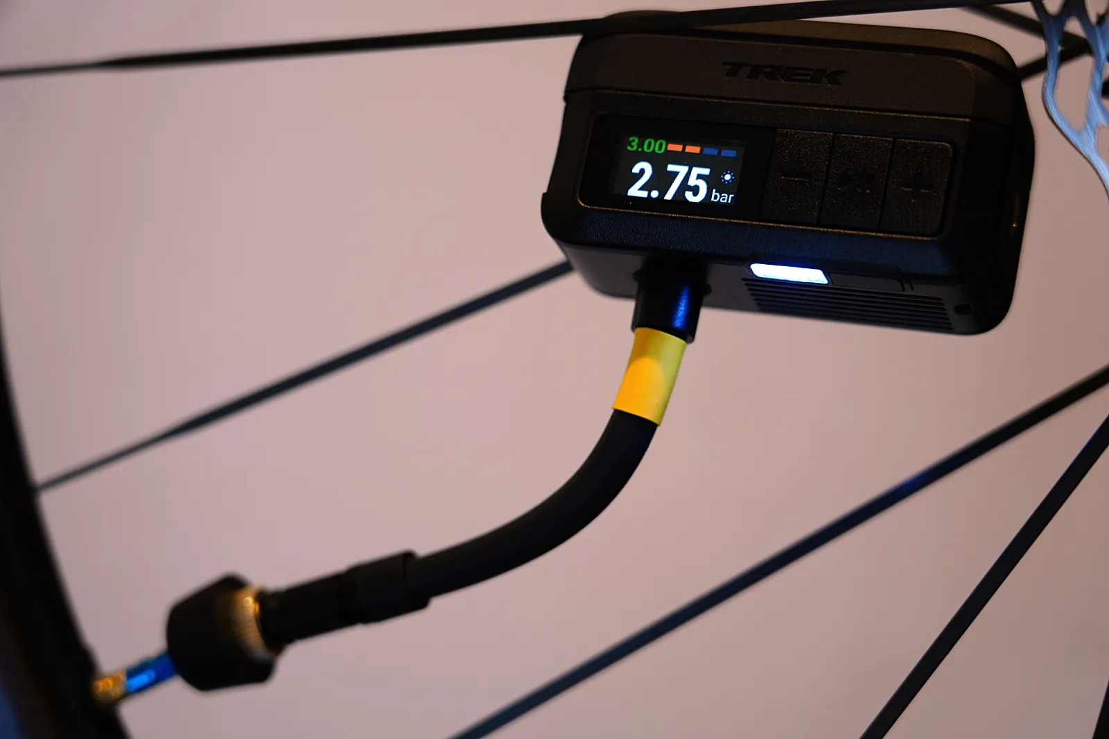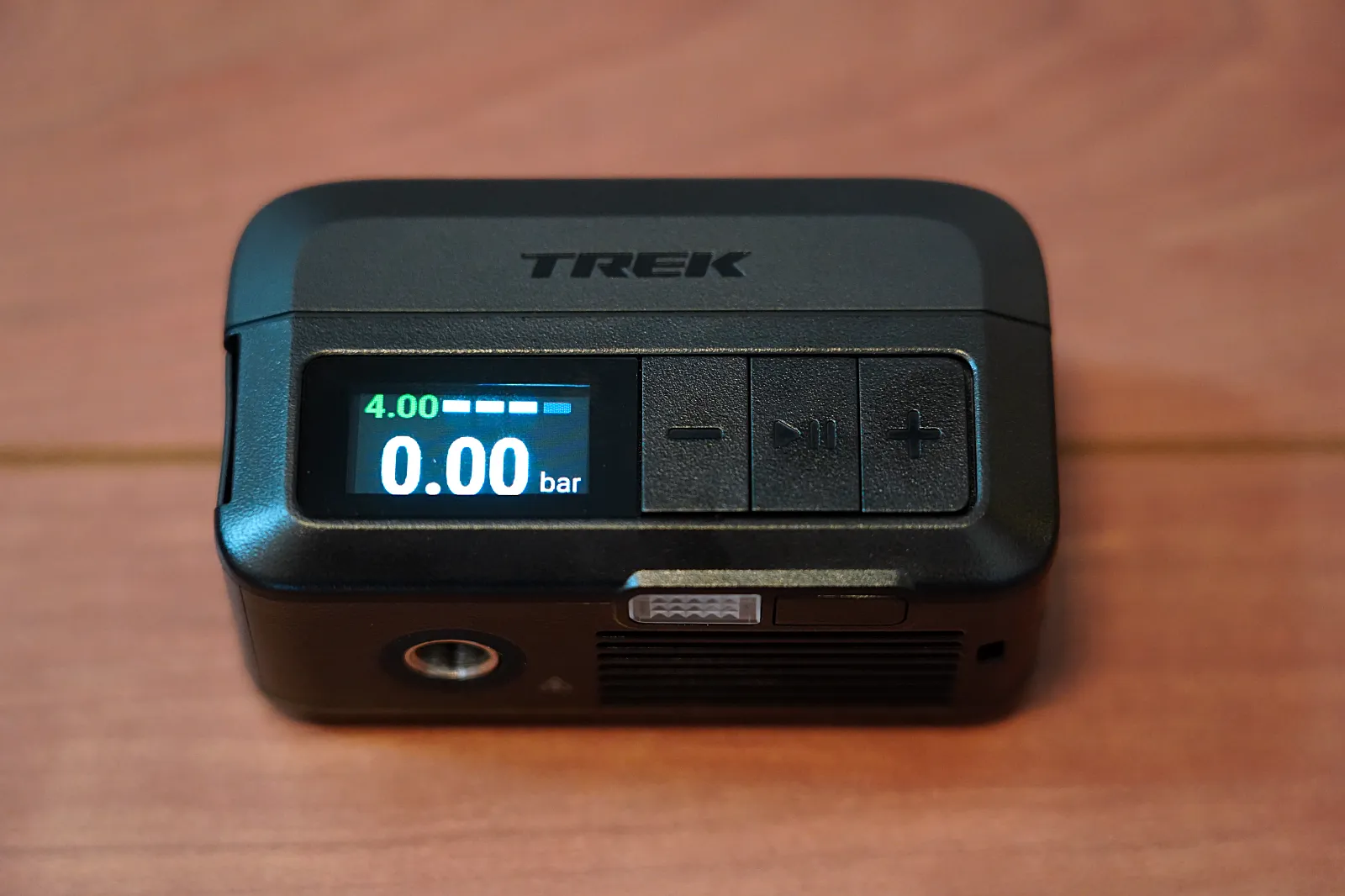 ユーザーインターフェイスは全体としてシンプルかつ直感的であり、電源投入時にはTrekのロゴが表示される。目標空気圧の設定は、ボタンの長押しで数値を高速に変更でき、単押しでは1単位ずつの微調整が可能だ。設定した目標圧力に到達すると、ディスプレーが緑色に点滅してユーザーに知らせる。