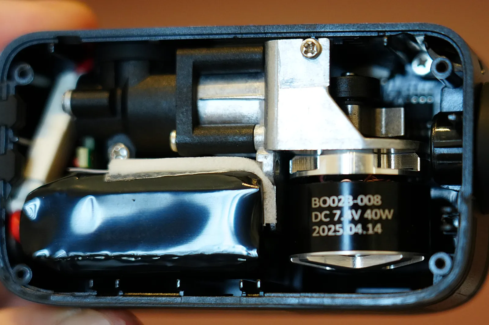 モーターに関しても、高効率かつ小型のDCモーター(7.4V 40W)が使用されていた。一部の競合製品ではドローン用モーター技術の応用がうたわれている例もあり、Air Rushがどのようなアプローチで小型化とパワーを両立しているかは興味深い。これらのコンポーネントの効率が、バッテリー持続時間や発熱特性に直接影響する。