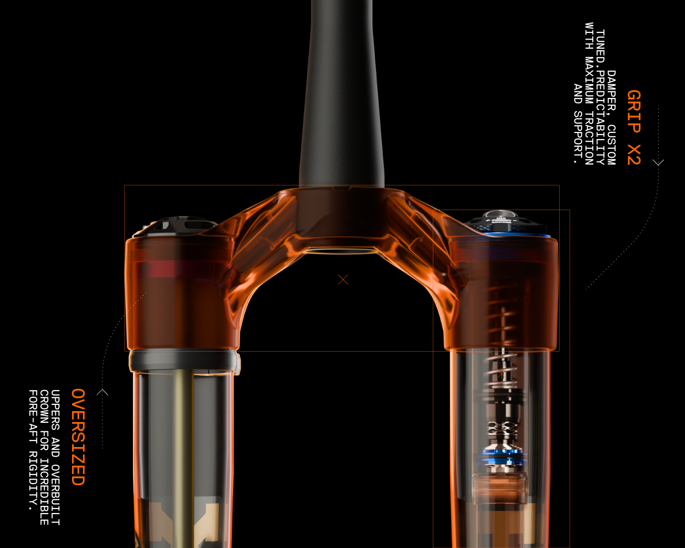 Foxのエンジニアたちは、この根本的な問題を解決するために、発想を180度転換した。倒立構造が持つ本質的な利点、すなわち優れた剛性設計の自由度と潤滑性を活用し、フリクションを極限まで低減させることで、Grip X2ダンパーが持つ本来の性能を完全に解放することを目指したのである。