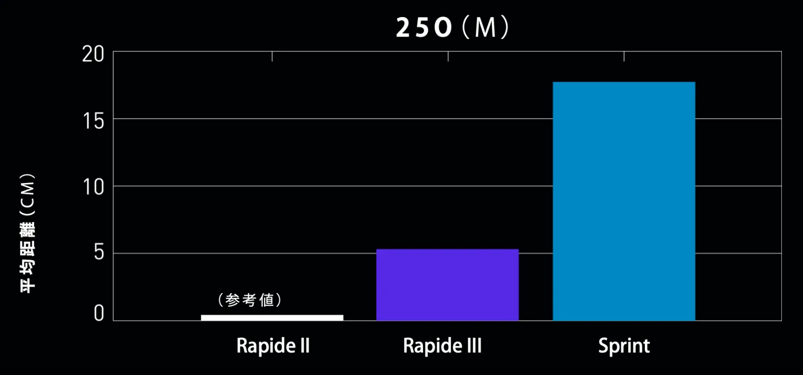 ゴール手前250mからのスプリントにおいて、Rapide CLX Sprintは、優れたオールラウンドホイールであるRapide CLX IIに対して、ゴールラインで18cmもの差をつける。これは、写真判定でも決着がつかないほどの僅差で勝敗が決まるプロのレースにおいて、勝利と敗北を分けるに十分な、決定的なアドバンテージである。