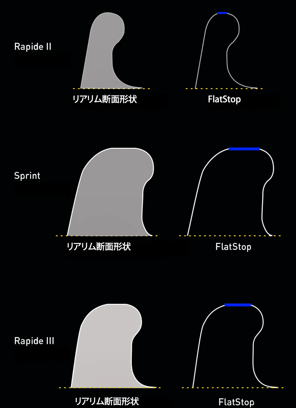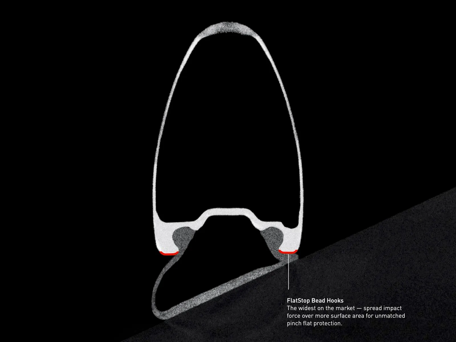 ビードフックの上面を広く、角を大きなR(曲率半径)にすることで、衝撃を受けた際のタイヤへのダメージを分散させる。これにより、リム打ちパンク(ピンチフラット)に必要なエネルギーが39%増加し、クラス最高レベルの耐パンク性能を実現したと主張する。