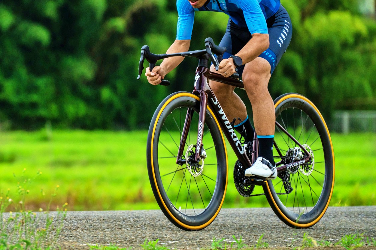 これは、ゼロ発進やコーナーからの立ち上がり、アタックへの反応といった「爆発的な加速」に直結する。過去に軽量Rovalホイールを使ったテストでも、その加速の鋭さは際立っていた。ライダーの入力に対して即座に推進力に変換される感覚がある。