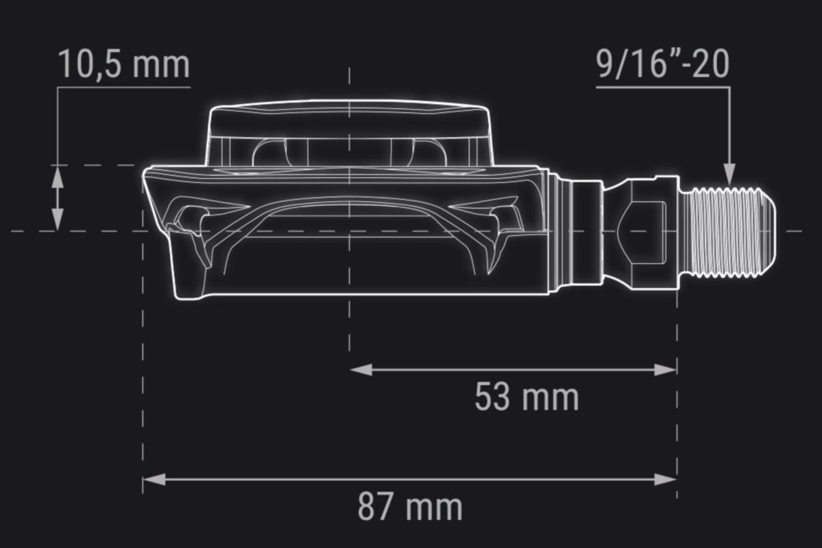 Qファクターは標準的な53mm、スタックハイトは10.5mmと低く設計されている。これはShimanoのDura-AceやUltegraペダルとほぼ同等の数値であり、多くのサイクリストが慣れ親しんだペダリングフィーリングを提供する。