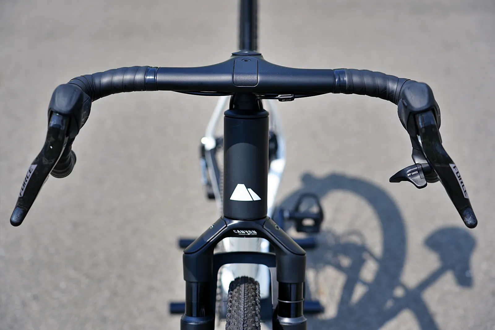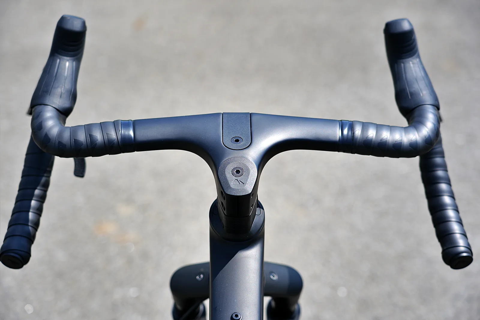一方で、Canyon独自の統合型カーボンコクピット「Canyon Cockpit CP0039」は、空力性能とエルゴノミクスに優れる反面、ステム長やハンドル角度の調整範囲が極めて限定的である。