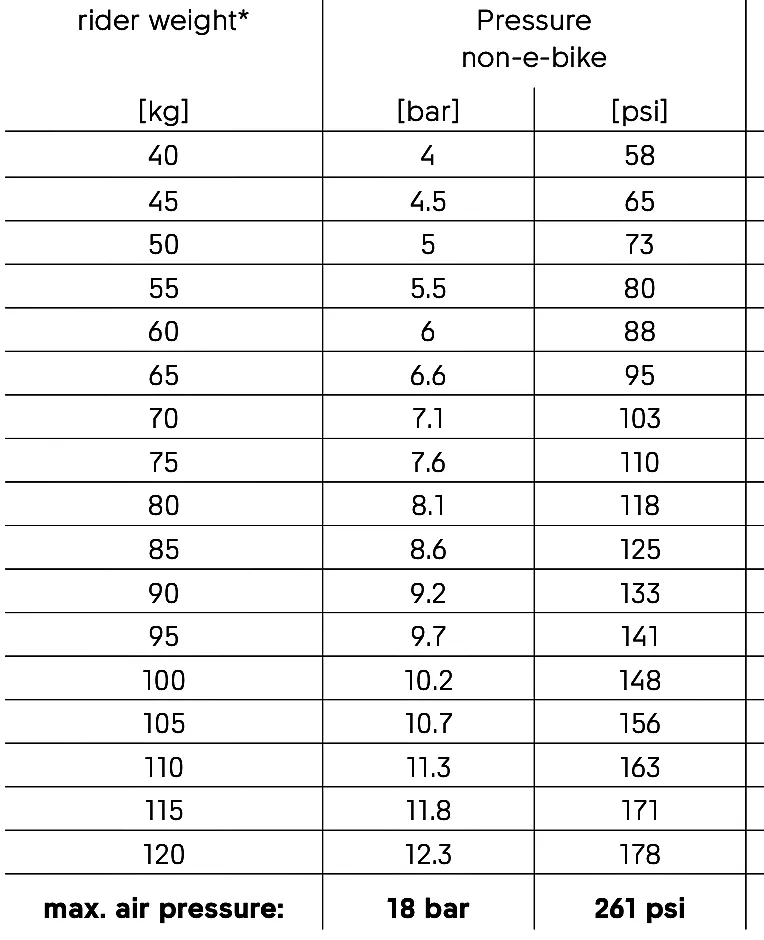 サスペンションのサグだしは、体重ごとに目安となるエアボリュームが決められている。体重+装備での実際の重量を元にサスペンションの設定を行う。