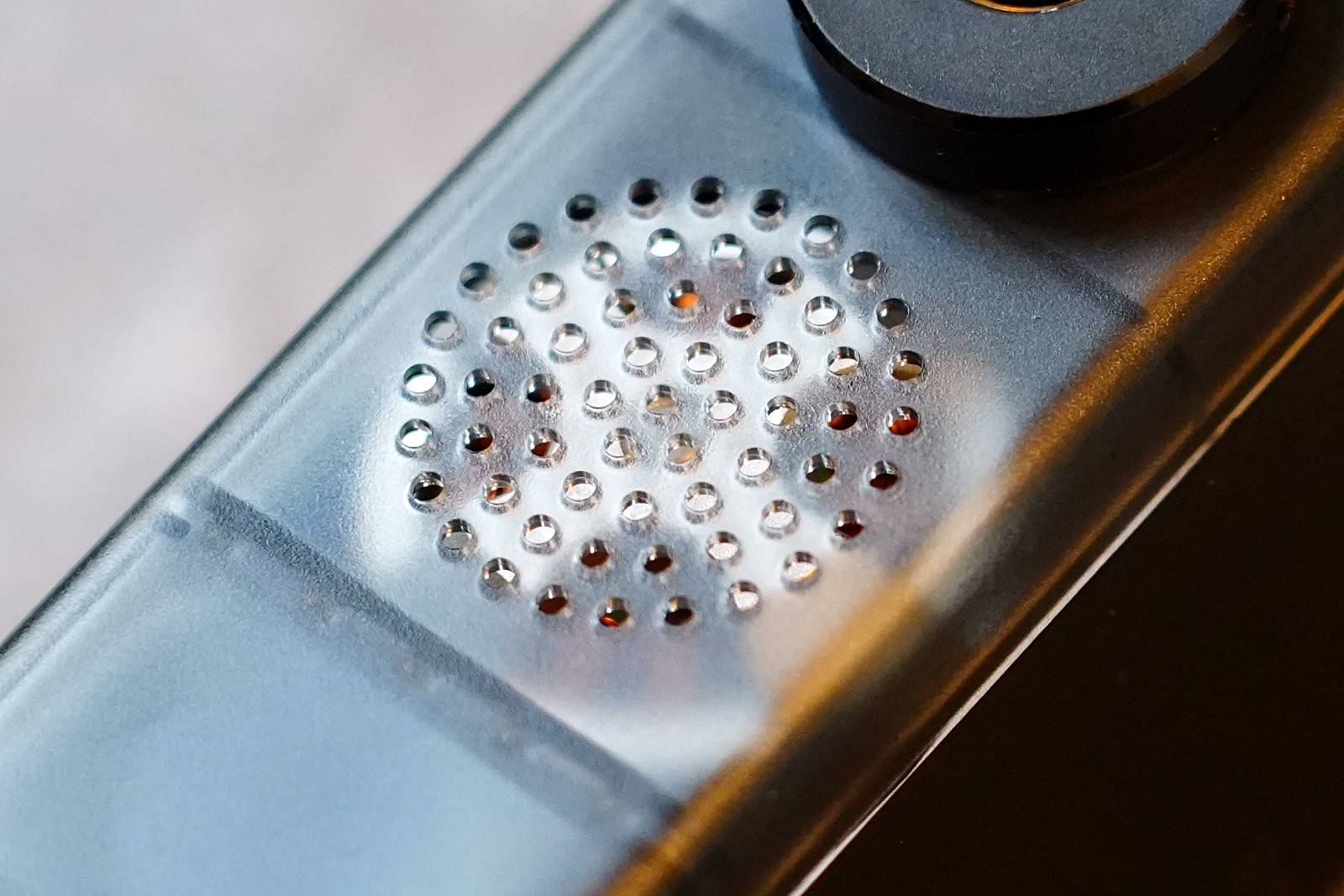 また、筐体正面にはモーターの動作を視認できる透明な窓が設けられており、これはユニークな美的特徴となっている。