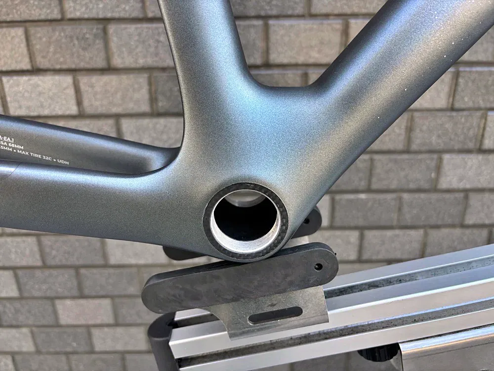 未塗装の公称重量650gに対し、塗装や細かなパーツを含むフレーム単体重量が704.5gであることは、非常に現実的かつ正直な数値と言える。2025年の上海サイクルショーでは、このフレームをベースにした完成車が4.95kgという驚異的な重量で展示され、その軽量化ポテンシャルの高さが示された。