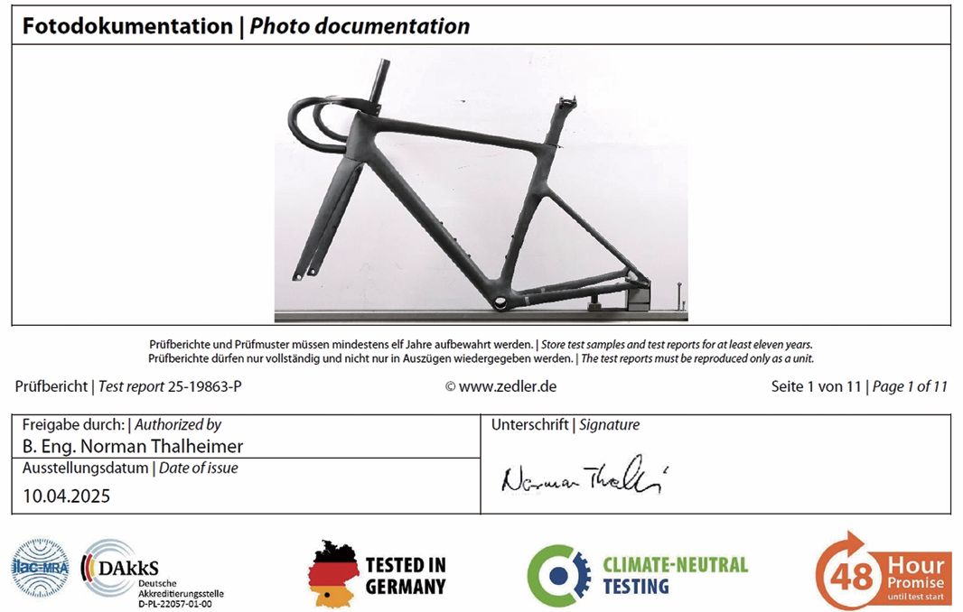 evolveは、自転車の性能試験において世界的な権威であるドイツのZedler InstitutにCIMAの評価を依頼した。ドイツの厳格なエンジニアリング基準による認証は、特に欧州の専門家層に対して、製品の構造的信頼性をアピールする強力な手段となる。