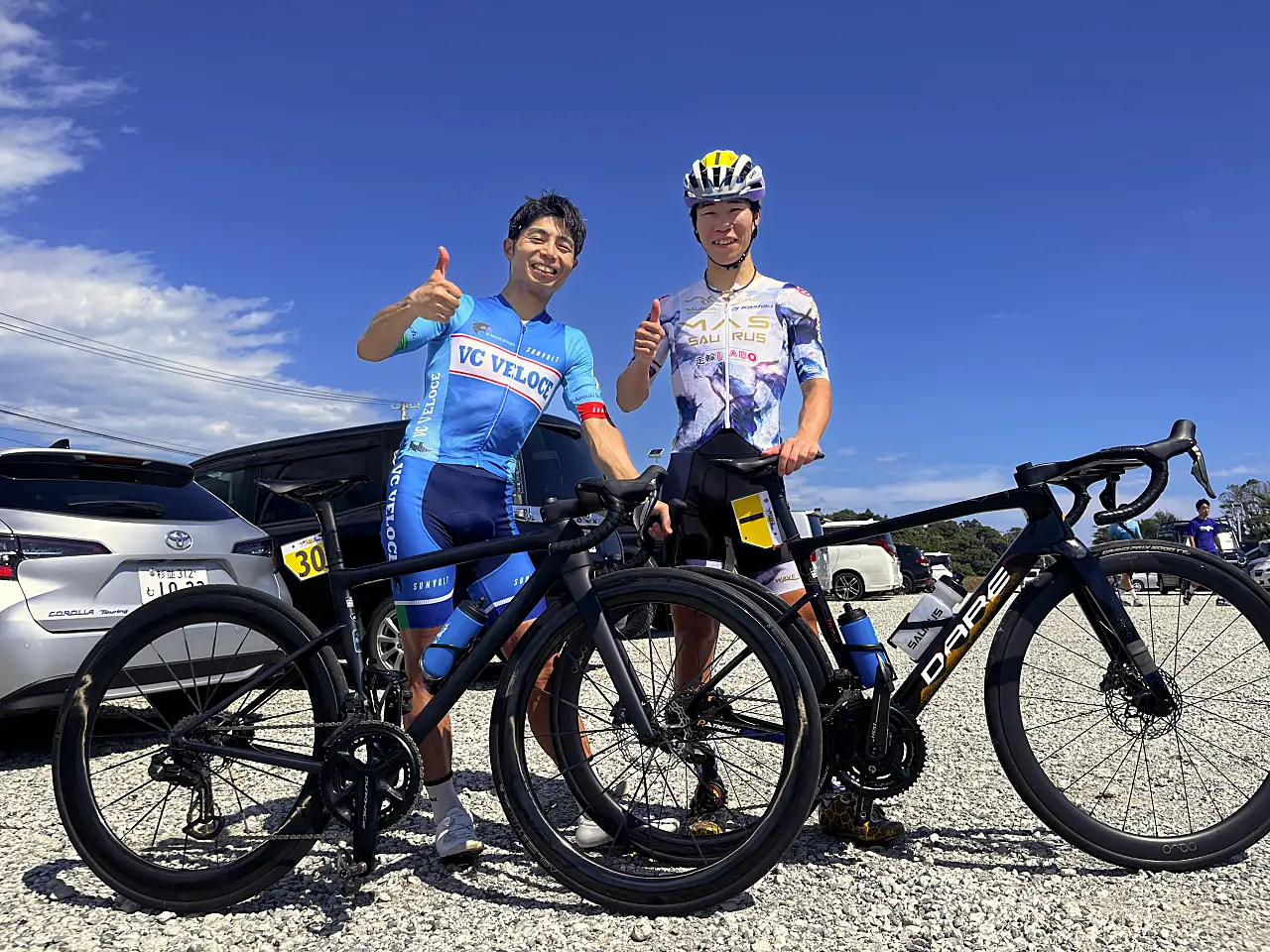 タイヤだけGP5000 TTTRに変更している。特に良かったのが、SUNVOLTの新型エアロワンピース、OGKのヘルメットFLEX-AIRとFA-2サングラス。特に調光のOGK FA-2サングラスは朝暗い時間から、日差しの強い時間帯、トンネルが続く福島のコースに最適だった。