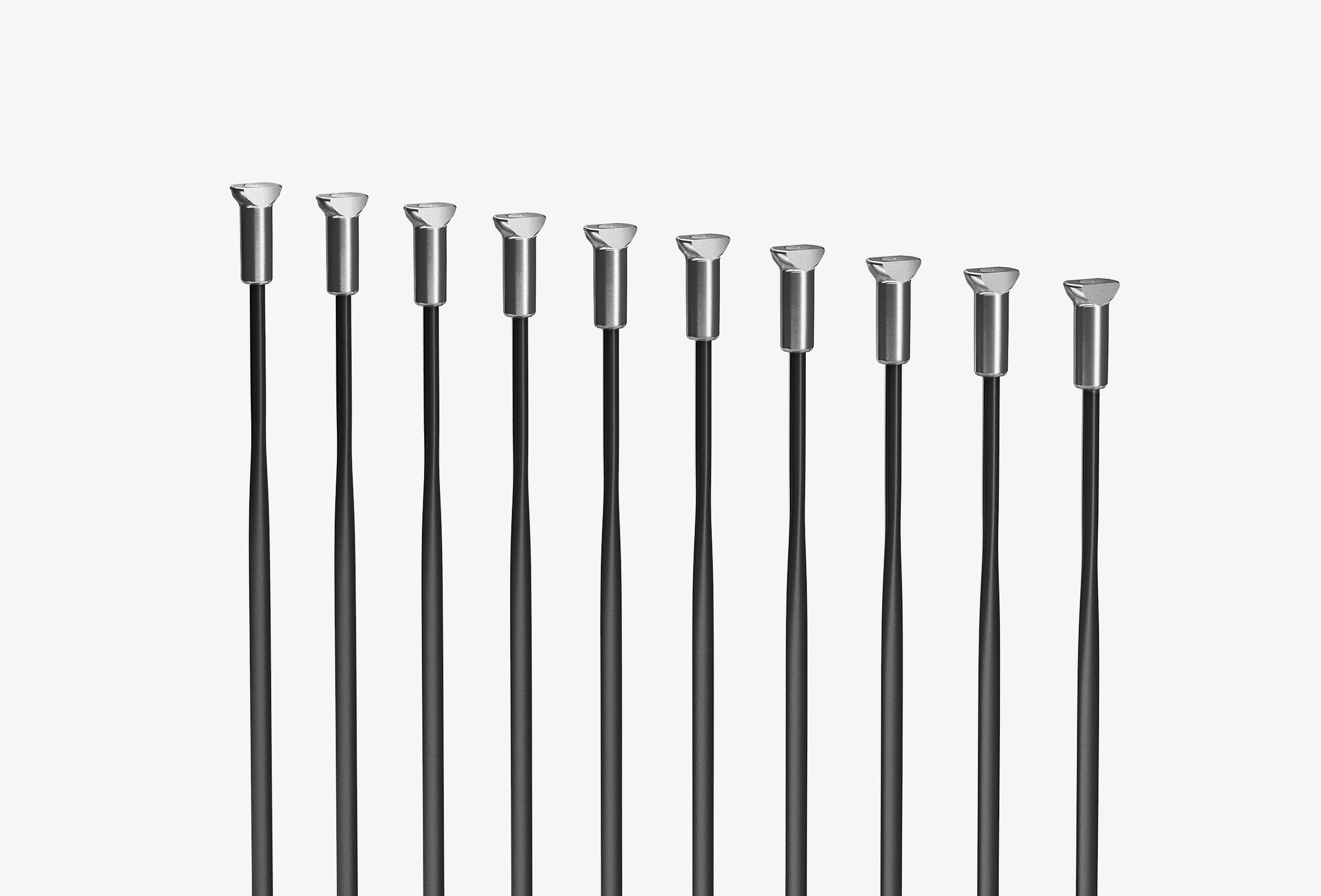 ハブ側はチタン製のT型ヘッド構造となっており、ハブフランジの専用スロットに正確に嵌合する。この構造は、スポークのねじれを完全に防止し、常に最適なエアロ形状を維持すると同時に、正確なテンション管理を可能にする。