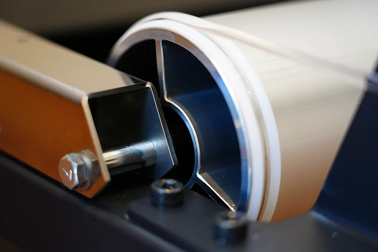 GT-Roller Q2の卓越した静粛性と低振動性は、そのローラー自体の構造と加工精度に起因する。従来のローラーがパイプとフランジを組み合わせた分割構造であるのに対し、本製品では「一体型ローラー」を採用している。