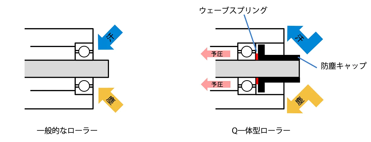 これは、従来の3本ローラーにおけるベアリングの短寿命という課題に対する明確な解答である。