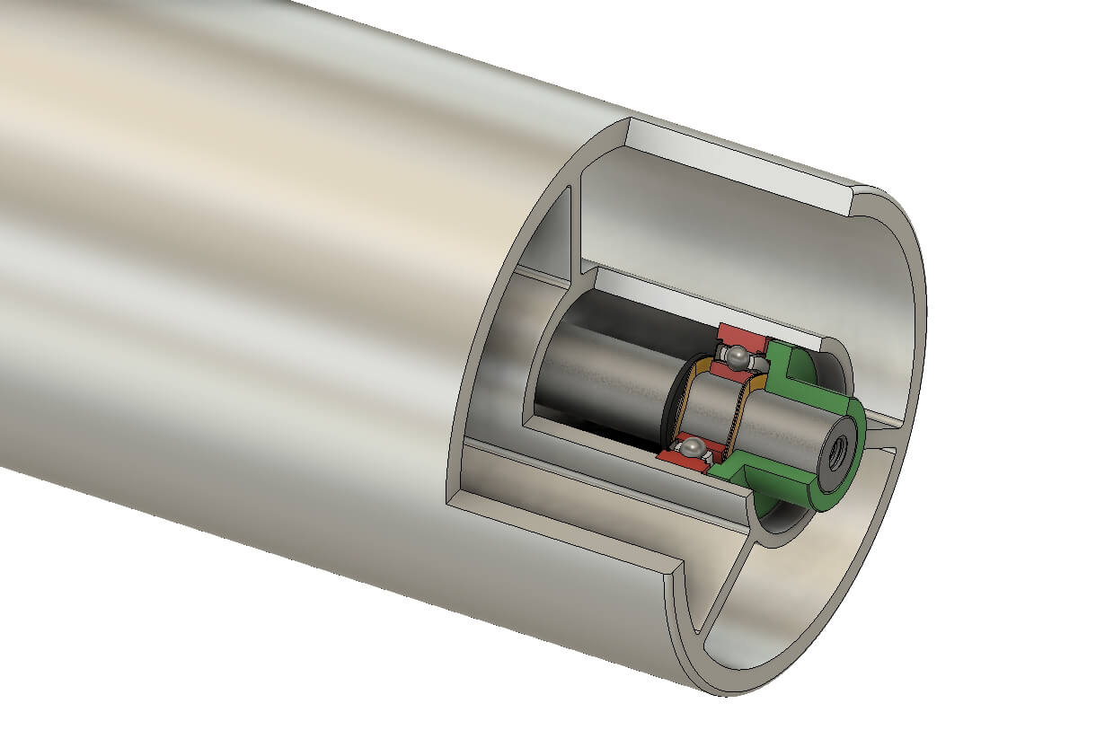 GT-Roller Q2のリア部に搭載されたスライドユニットは、産業機器用のスライドベアリングと最適化されたスプリングにより、この前後動をスムーズに吸収する。