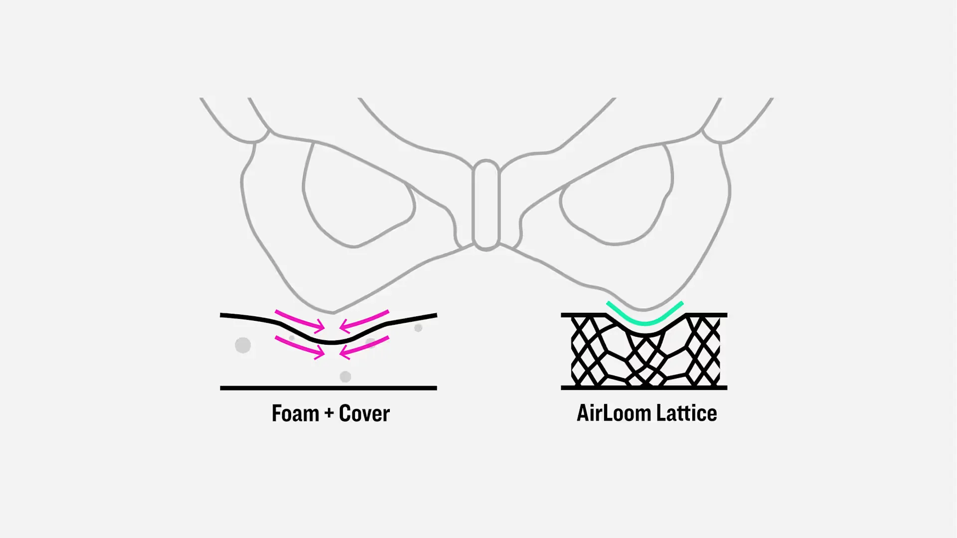 このフルカーボン構造は、本質的に剛性の高い設計に、いかにして快適性と柔軟性をもたらすかという工学的な課題を生む。この課題への答えがAirLoomラティスである。