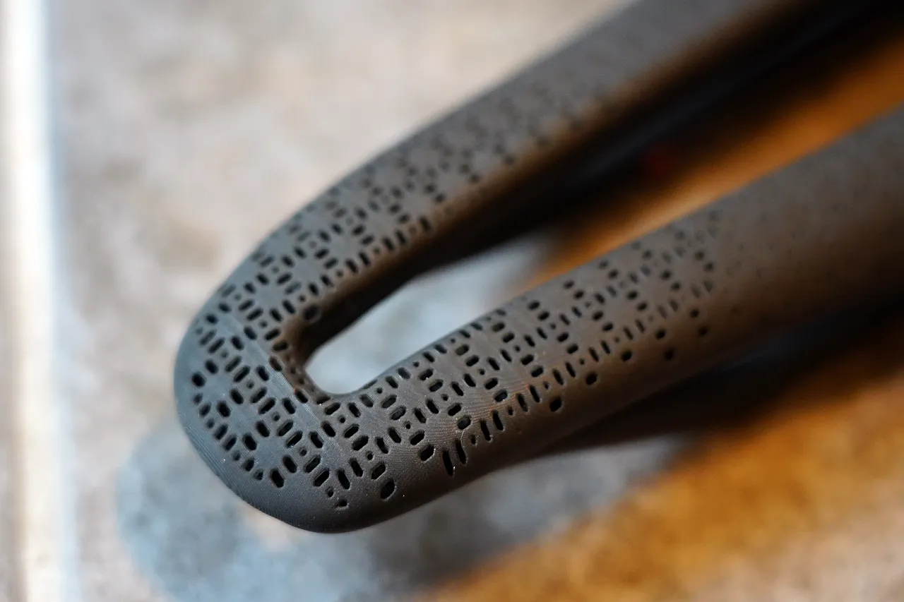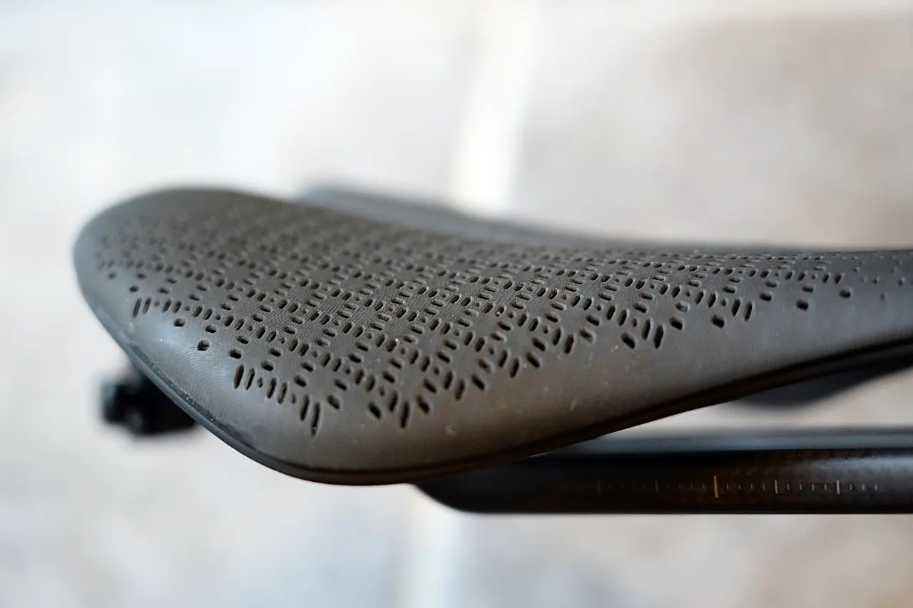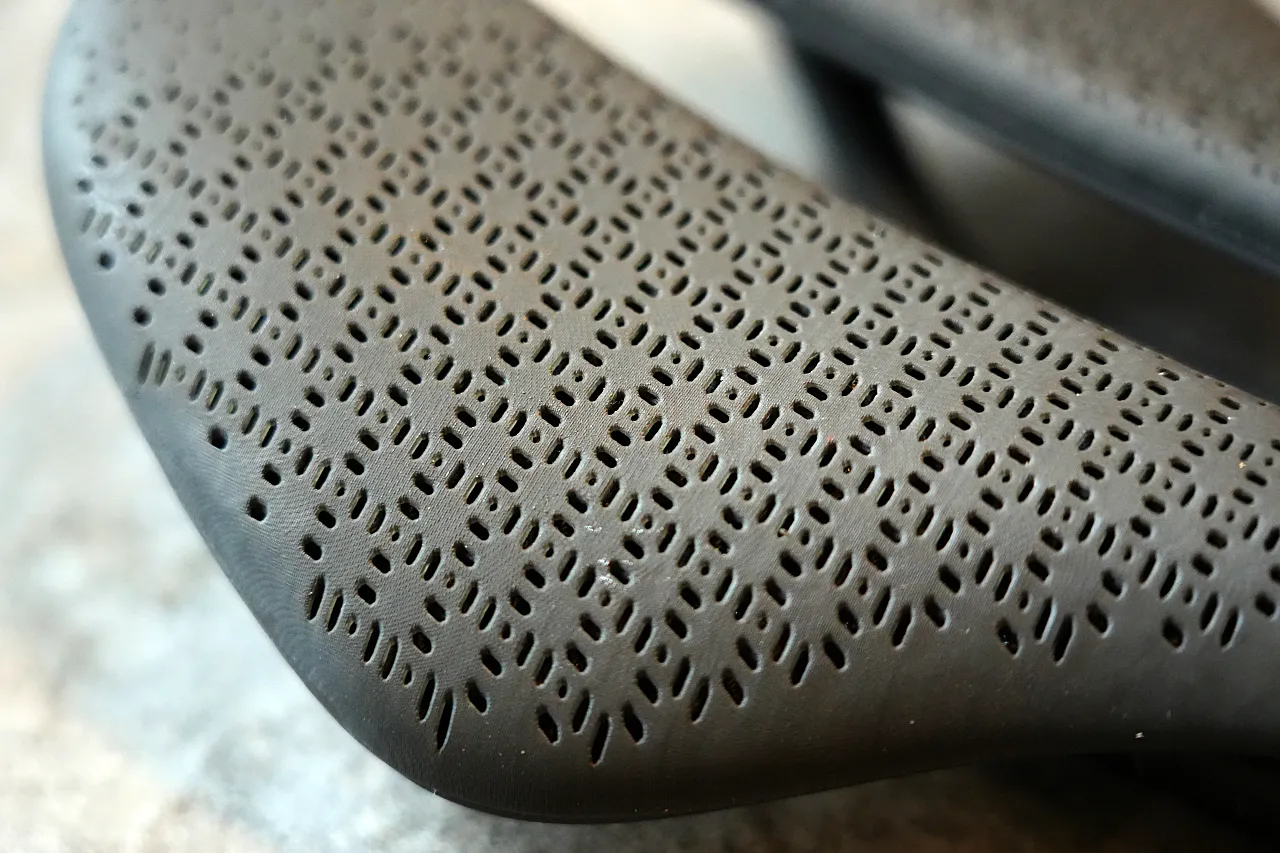 シェル自体は剛性を最優先に設計されているため、サドルのクッション性と柔軟性はすべてこのラティス構造が担う必要がある。つまり、このサドルは「支持基盤(シェル)」と「快適性システム(ラティス)」の機能を明確に分離するという設計思想に基づいている。