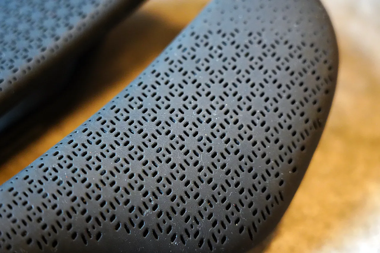 さらに、この高密度な構造は、競合の開放的なラティス構造よりも耐久性が高く、洗浄が容易である可能性が高い。このことから、TREKは開放的なラティス構造がもたらす目新しさよりも、ユーザー体験と長期的な実用性を優先したことがうかがえる。
