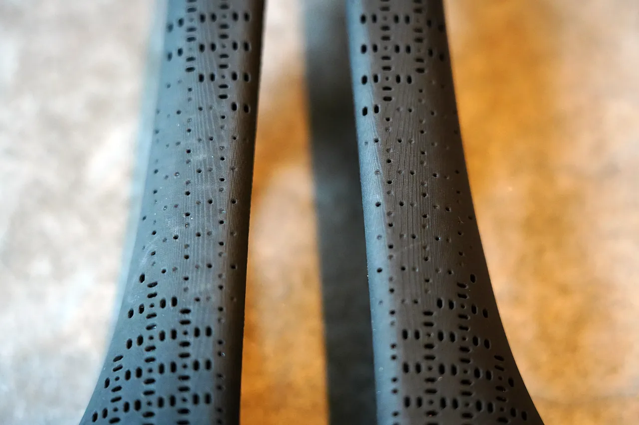 高強度での加速時やエアロポジションを維持する際に「安定している」と明らかに感じられる。また、ラティス構造はペダリングに伴うわずかな左右の動きにも追従し、摩擦を低減する効果もある。