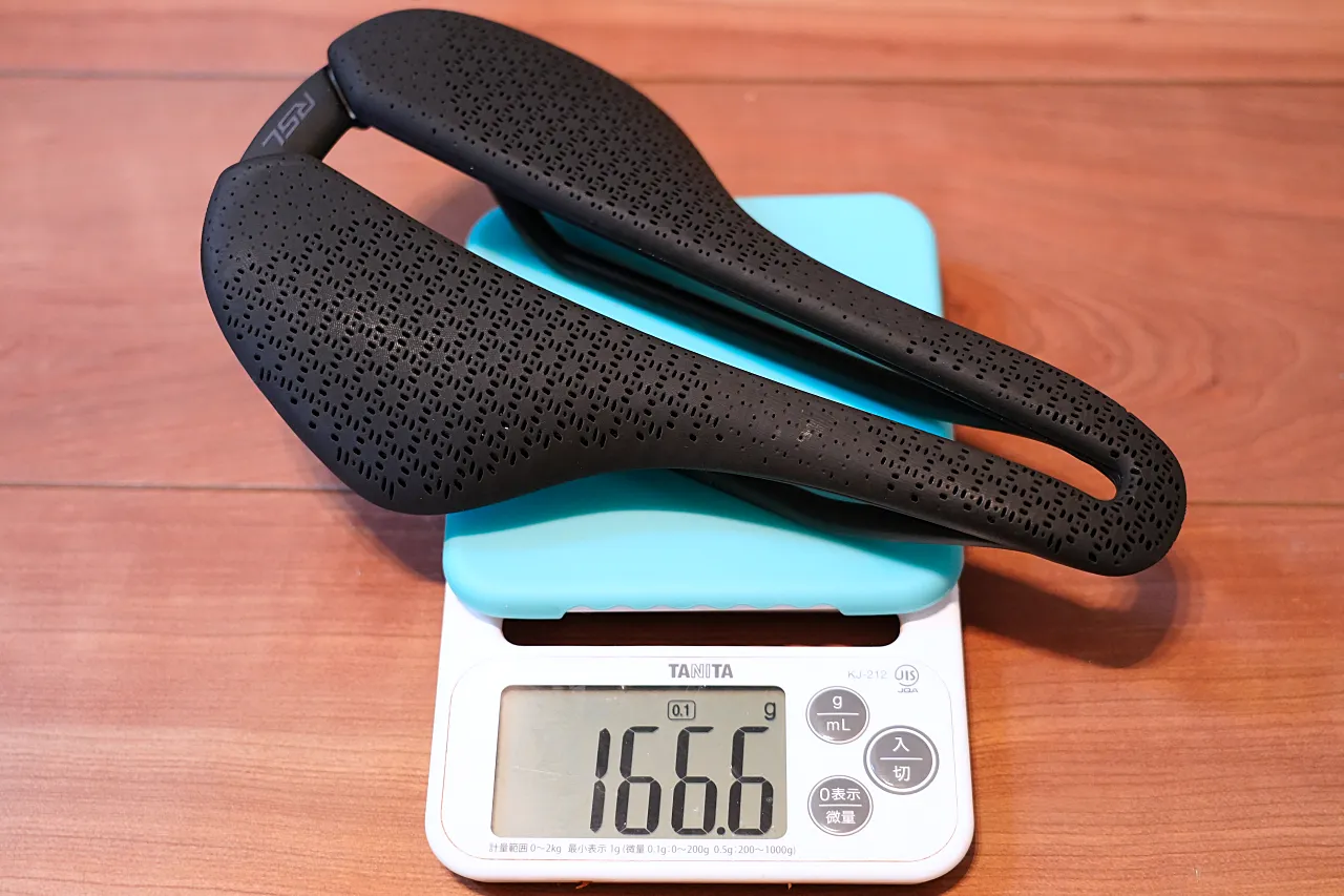 TREKはRSL AirLoomの公称重量を135mm幅で162g、145mm幅で164g、155mm幅で167gと発表している。サドル後部にはBlendrマウントが標準装備されているが、これらを抜いた状態での重量表記である。