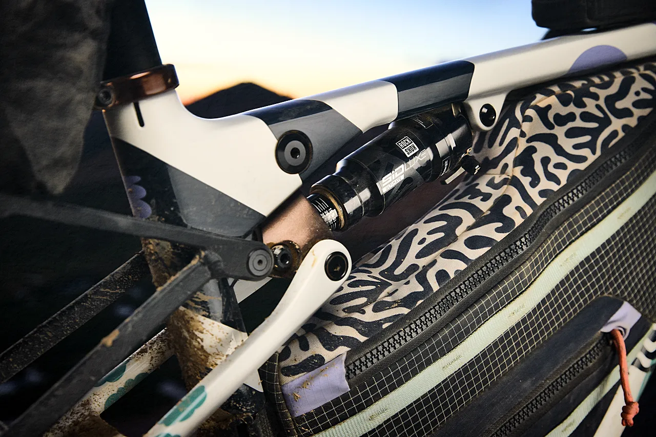 Checkout SLの心臓部は、RockShoxと共同で最適化された前後サスペンションシステムである。フロントには60mmトラベルを誇る新型RockShox Rudy XLフォーク、リアにはフレーム専用に設計されたRockShox Sidluxeショックが55mmのリアホイールトラベルを生み出す。