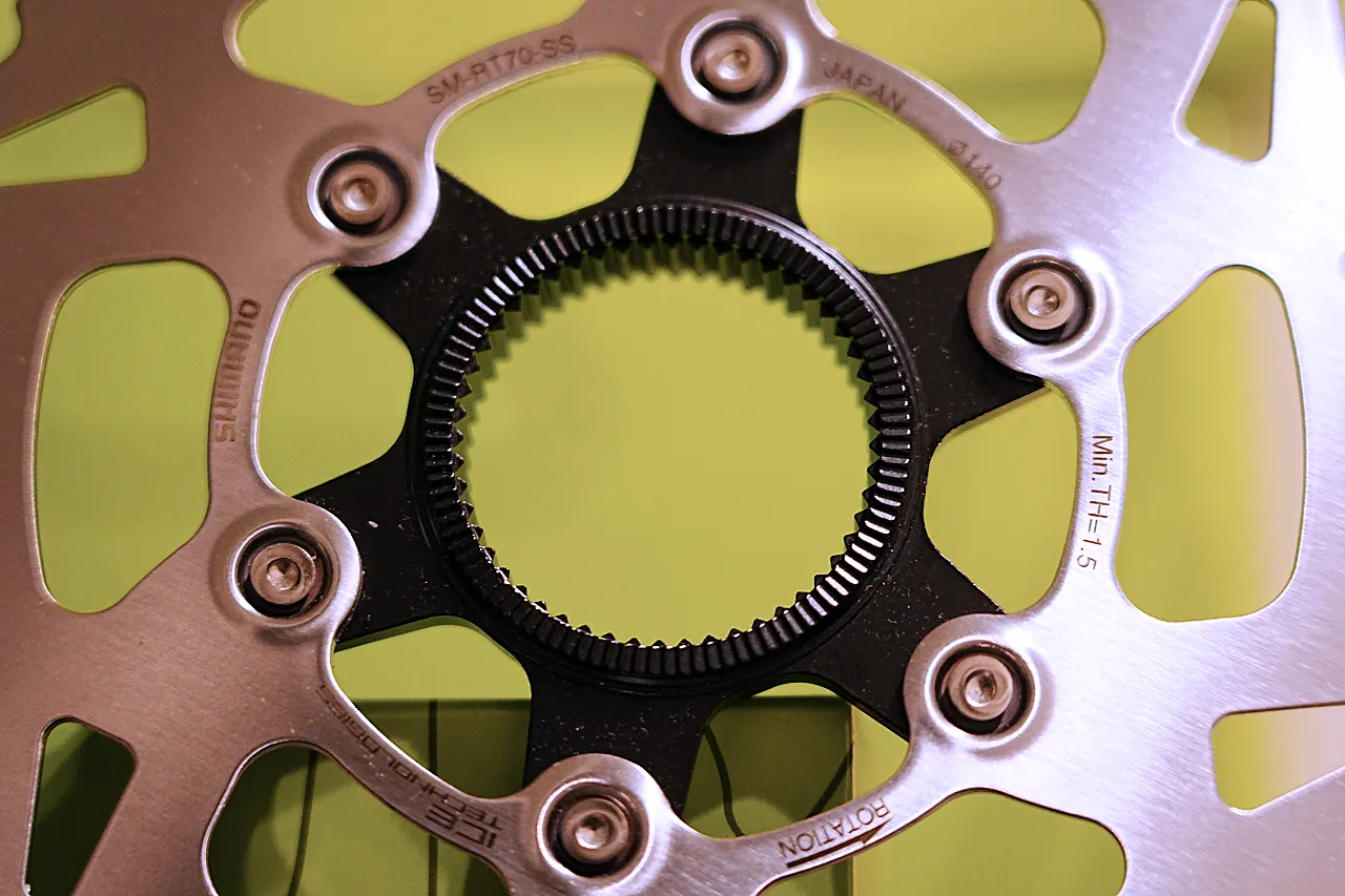 上位グレードのローターは、一貫して軽量に作られている。160mmサイズで比較すると、SM-RT70が約133gであるのに対し、RT-CL800は約114g、そしてロードバイクにも多用されるMTB用のRT-MT900(XTR)は約108gである。この重量差は、特にヒルクライムやレースシーンにおいて無視できない要素となる。