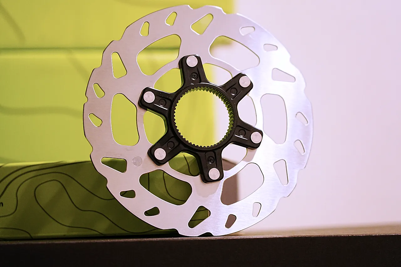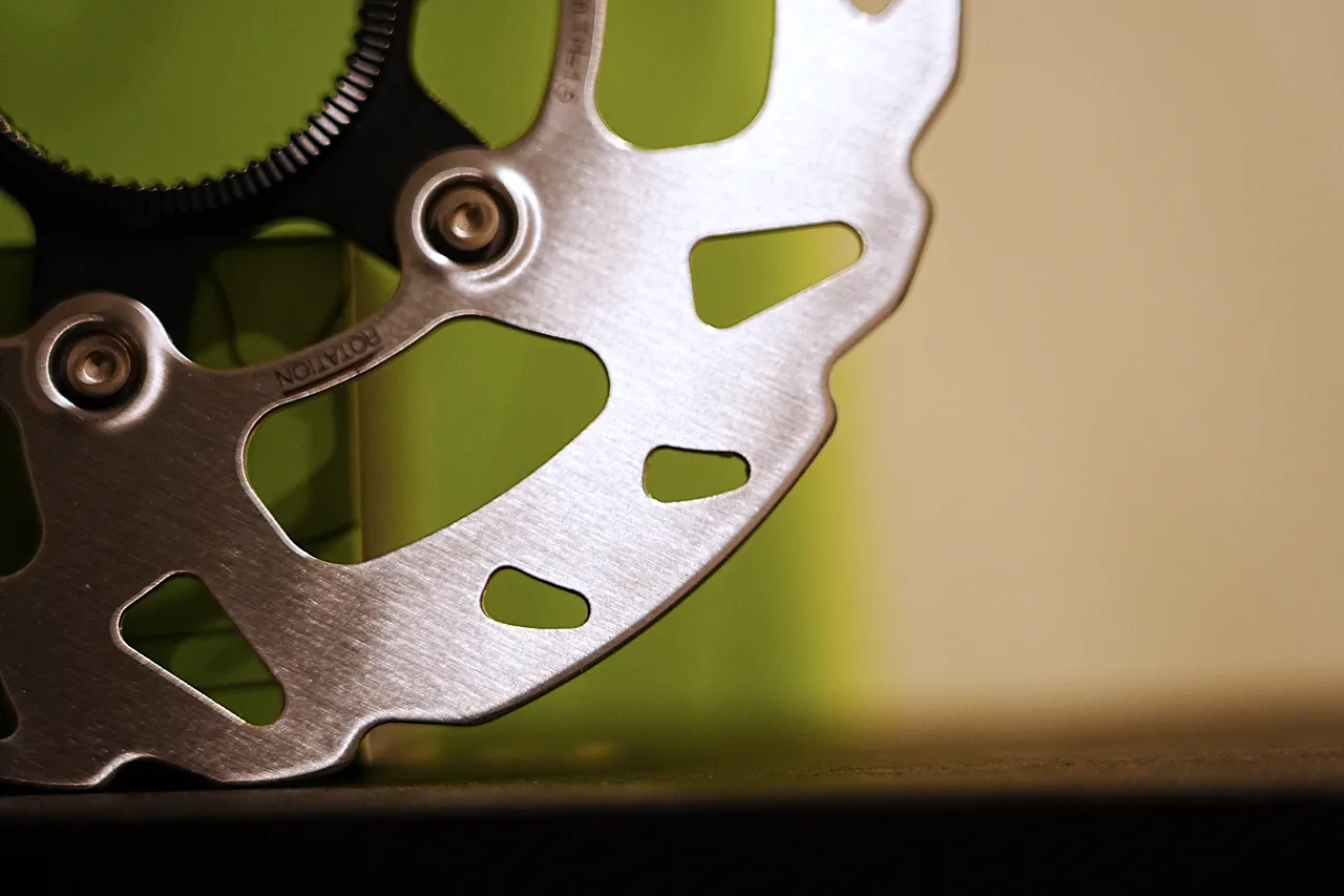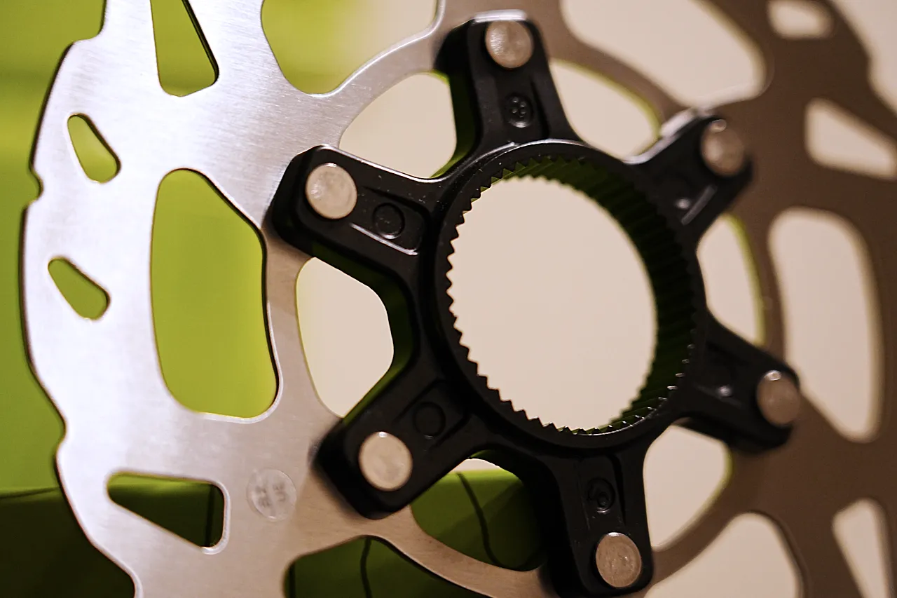 さらに、スプラインによる嵌合は接触面積が広く、ローターとハブの一体感を高める。これにより、ブレーキング時にかかる強力なねじれ方向の力に対して高い剛性を発揮し、たわみを抑制する。