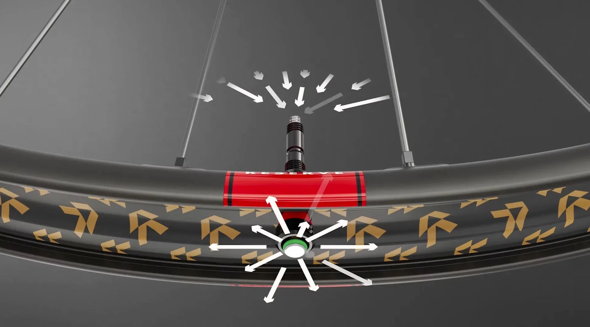 この設計は、仏式バルブの構造とは対照的である。仏式バルブでは、空気流路の途中に取り外し可能な小型のバルブコアが存在し、これがエアフローの最大の抵抗源であり、かつシーラント詰まりの主たる原因となっていた。