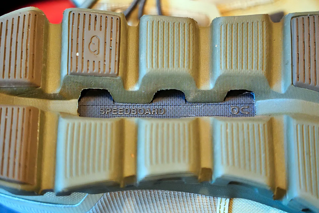 ミッドソールに内蔵されたSpeedboardは、CloudTecシステムと足を繋ぐ重要な役割を担う。Cloud 6ではナイロン6をブレンドした素材が使用されており、この液体射出成形ポリマープレートが着地時に蓄えた運動エネルギーを前方への推進力に変換する。
