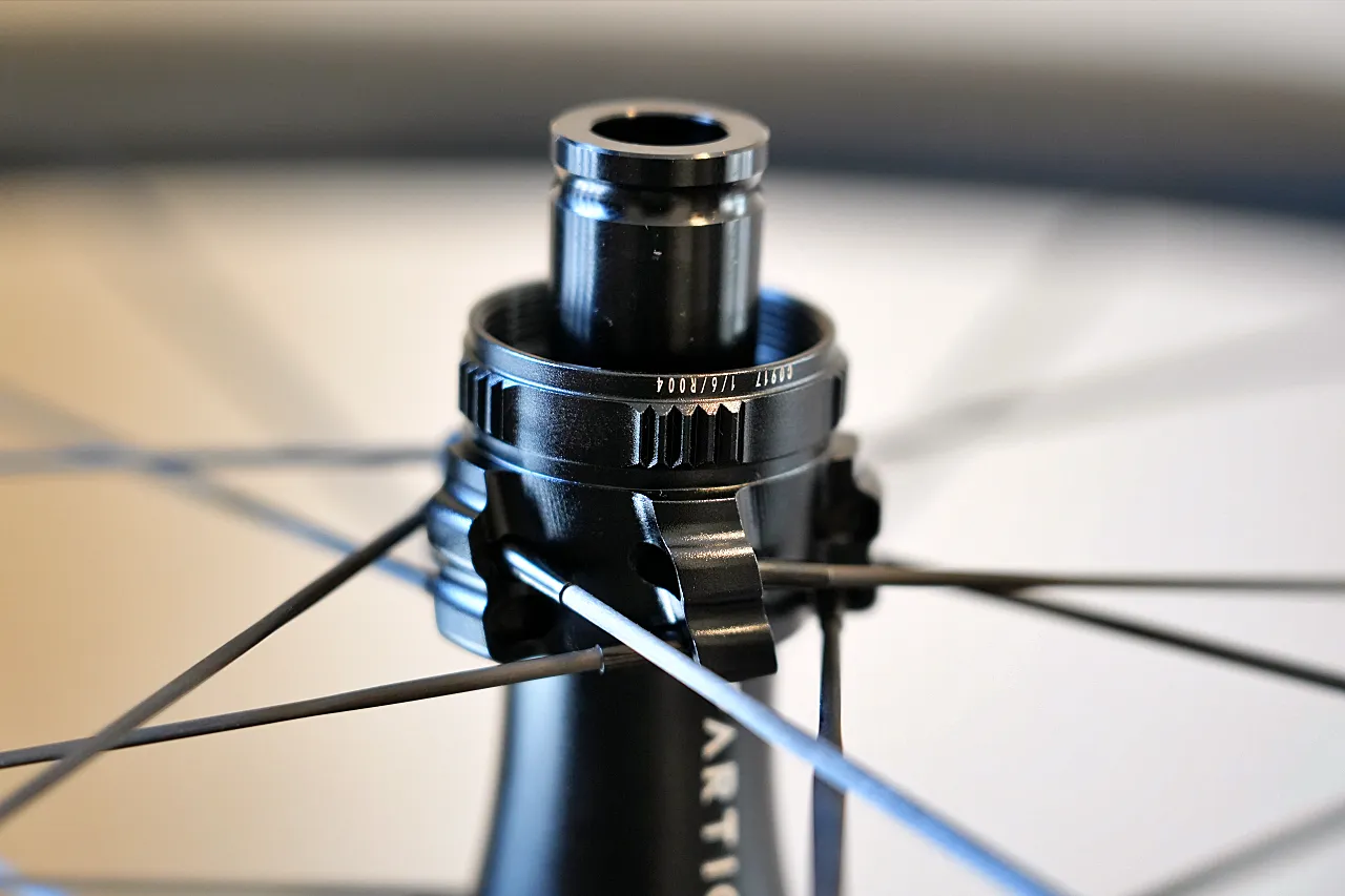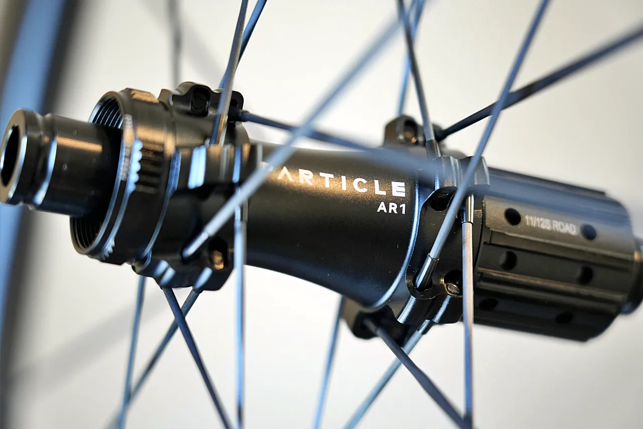 AR1ハブはRCXのリム、さらにカーボンスポークの性能を最大限に引き出せる様な構造になっている。前述した、左右タンジェント組によるスポークテンションの左右差は、これらハブ、リム、スポークの三位一体が合わさることで、少なからず是正される。