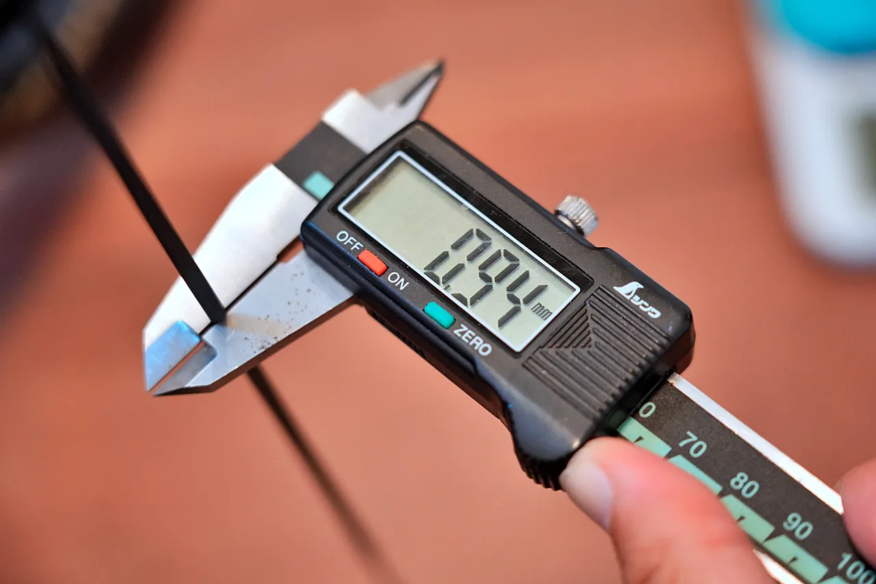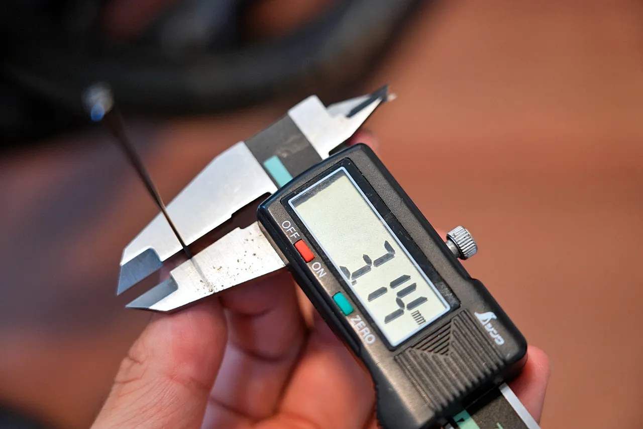 Particleのホイールに採用されているスポークは、しなやかさがある。手で曲げてみてもほとんど抵抗せず、スチールスポークのように簡単に曲がってしまう。VONOA製かどうかはわからないが、いま世界で第四世代を作れるメーカーは数少ない。
