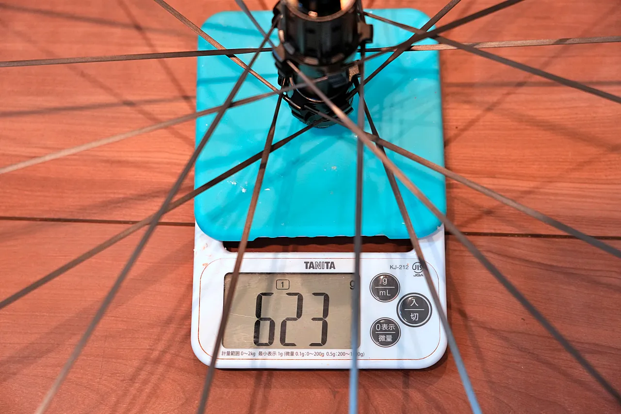 多くのホイールメーカーがノンドライブ側をラジアル組にして、左右のスポークテンション差を是正する方針を取っている。しかしParticleの組み方は伝統的な左右タンジェント組であり、駆動方向やブレーキングに対して有効な構造になっている。
