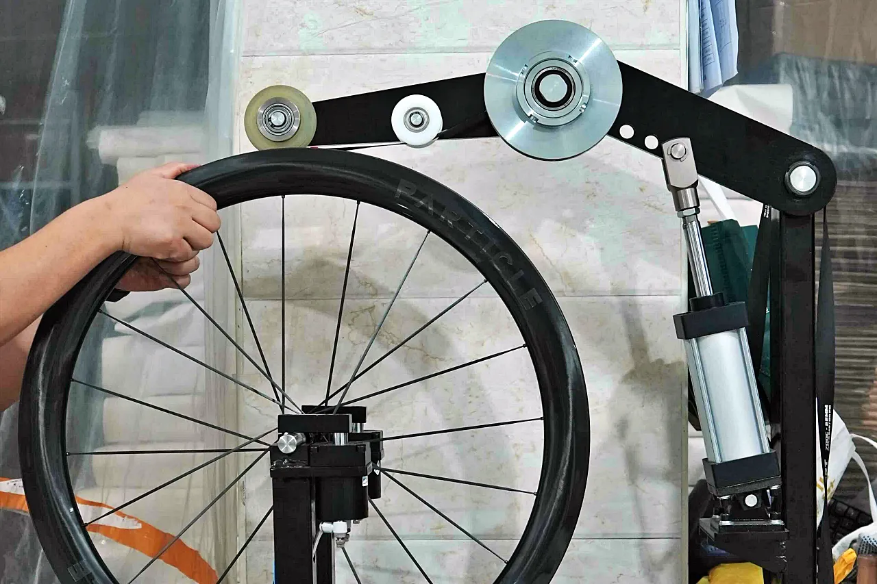 - 剛性テスト: リム単体およびホイール全体での横剛性・ラジアル剛性を測定し、設計通りの性能が発揮されているかを確認する。