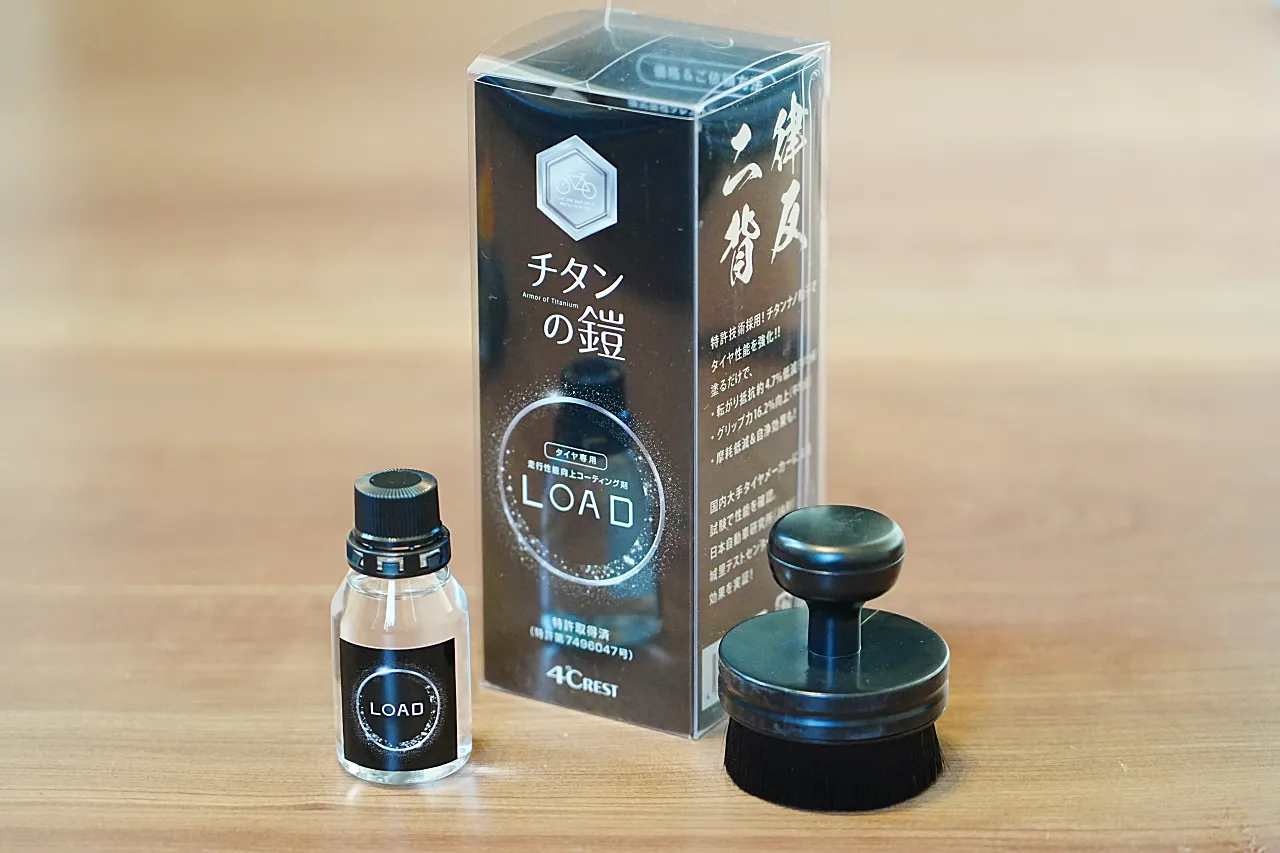 「チタンの鎧-LOAD-」は、走行性能の向上を目的としたタイヤ専用のコーティング剤である。その核心には、特許技術を応用した酸化チタンナノ粒子が用いられている。